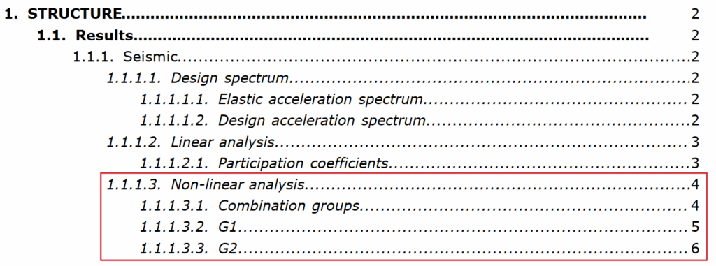 For each NLC group, a set of seismic results is obtained. For each combination of the group, these results are combined with the results of the non-linear analysis of the rest of the actions involved according to the corresponding combination coefficients.