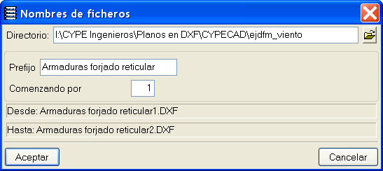 En el momento que se exportan al formato DXF los planos generados por el programa el programa permite que el usuario especifique el directorio de destino de dichos archivos. Además, se permite que el prefijo de cada uno de los planos contenga más de 8 caracteres.
