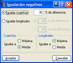 El programa agrupa negativos de viguetas contiguas cuya cuantía de acero no difiera del porcentaje indicado por el usuario. A continuación, todos los armados de negativos se igualan al de mayor cuantía del grupo o al de cuantía media del grupo, de acuerdo con la selección realizada por el usuario. Una vez que los calibres de negativos son los mismos, las longitudes de las armaduras se igualan a la de mayor longitud o a la de longitud media del grupo dependiendo también de la selección realizada por el usuario.