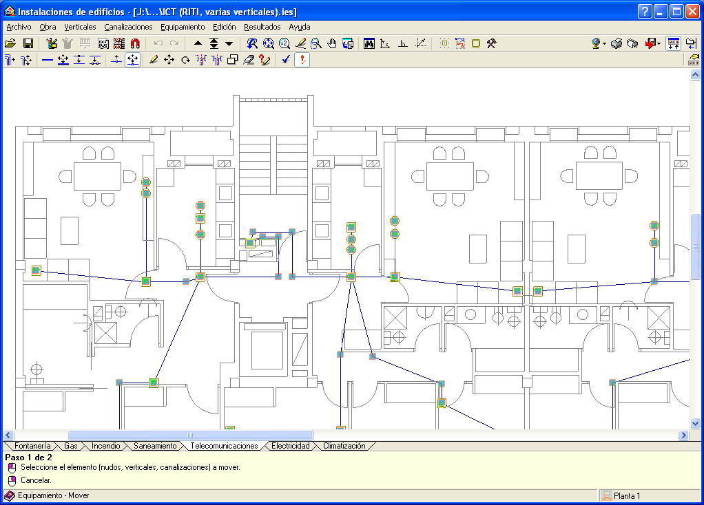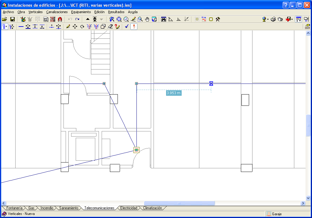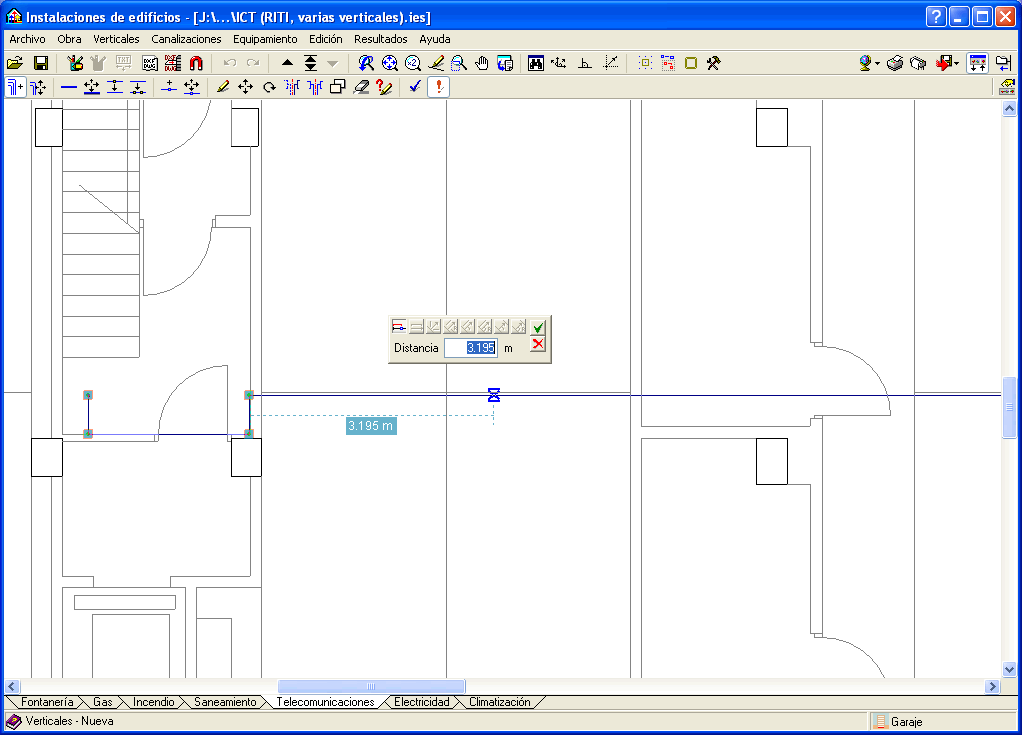 Gracias a estas herramientas, cuando se introduce un nudo de la instalación aparece en pantalla la distancia entre la posición del cursor y el nudo anteriormente introducido.
