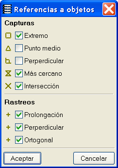 También pueden establecerse referencias a objetos del programa (nudos, conducciones, elementos constructivos, mecanismos...) al igual que se hace con las capturas a un fichero DXF/DWG y se pueden configurar los rastreos. Por ejemplo, se puede capturar la prolongación de una barra cuando se aproxime a ella con el cursor, dibujándose una línea discontinua.