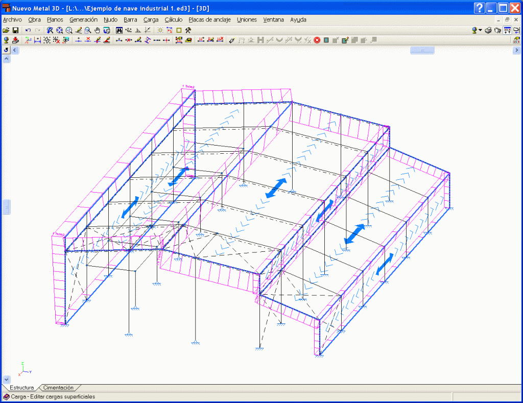 En las estructuras 3D integradas de CYPECAD también es posible definir cargas superficiales del mismo modo que en Nuevo Metal 3D.