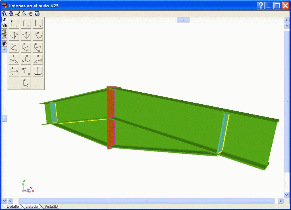La vista 3D de las uniones puede visualizarse seleccionando la solapa Vista 3D que aparece en la parte inferior de la ventana que se activa cuando se consulta una unión.