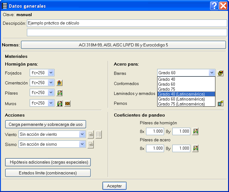 Se han incorporado al programa tres series de acero para barras denominadas Grado 40 Latinoamérica, Grado 60 Latinoamérica, Grado 75 Latinoamérica que están disponibles para la norma americana ACI-318.