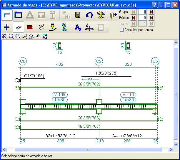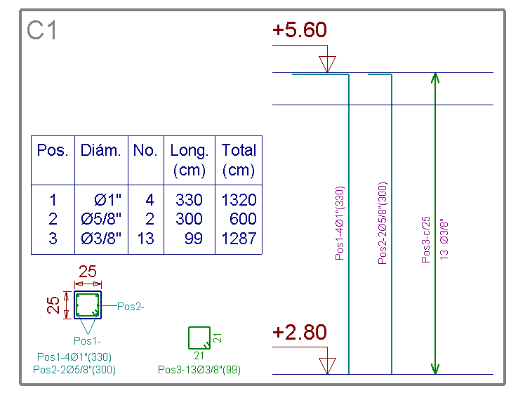 Si se emplean estas series de acero (Grado 40 Latinoamérica, Grado 60 Latinoamérica, Grado 75 Latinoamérica), el programa no utiliza el símbolo # para indicar el diámetro de las barras, emplea el símbolo Ø. El diámetro se expresa en pulgadas, para las barras admitidas por la norma ACI-318, y, en milímetros, para las barras adicionales.