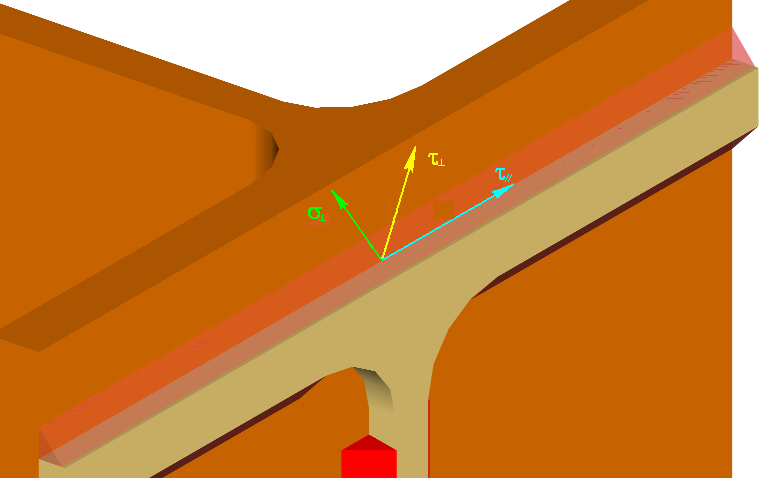 Los esfuerzos transmitidos al cordón de soldadura por unidad de longitud se descomponen en cada una de las componentes de tensión normal y tangencial al plano de la garganta, suponiendo que la distribución de tensiones es uniforme a lo largo de él.
