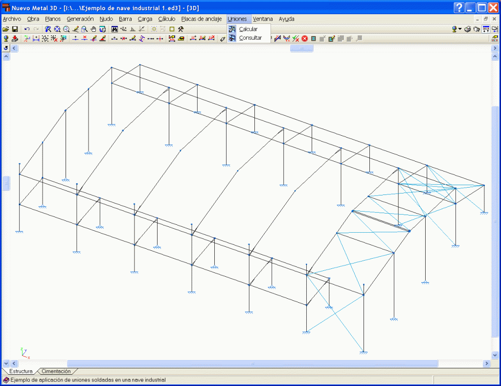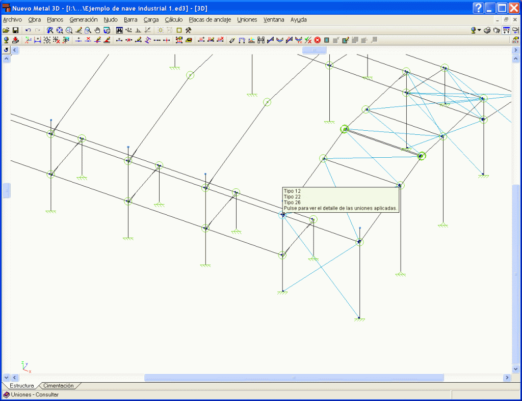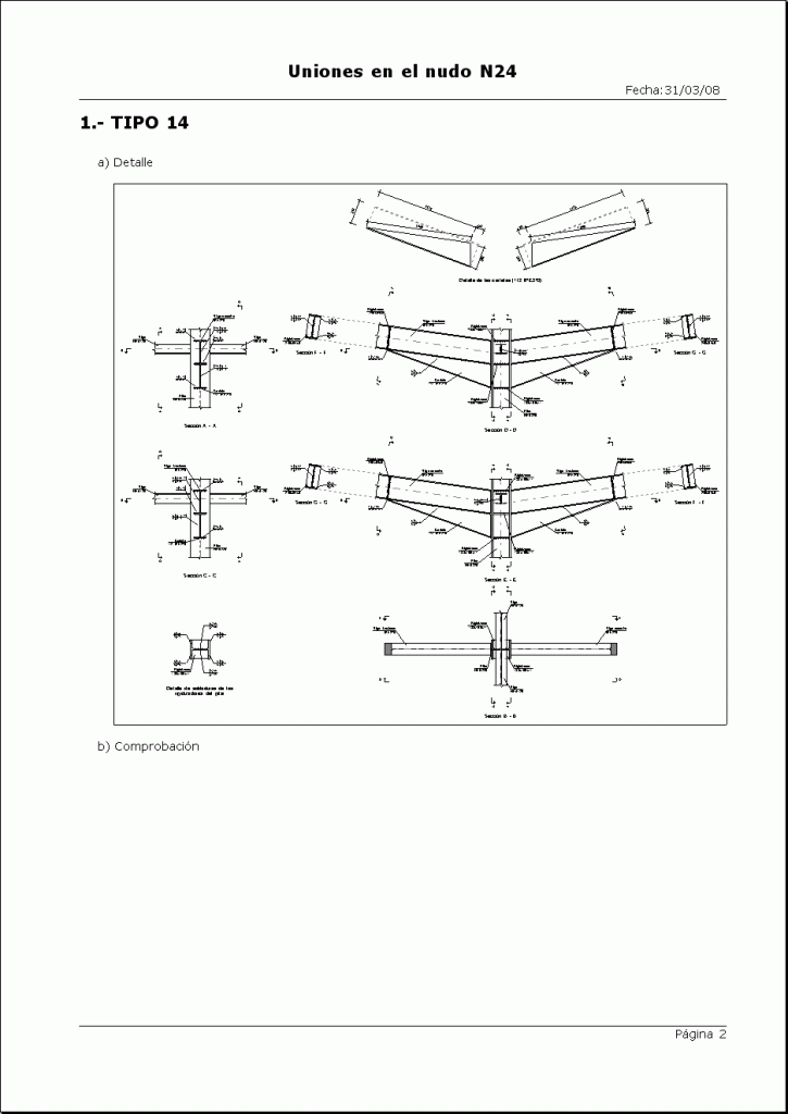 Si durante el proceso de cálculo de la estructura se detectan nudos cuya unión está resuelta en el programa, éste dimensionará las uniones y dará como resultado un plano de detalle de la misma.