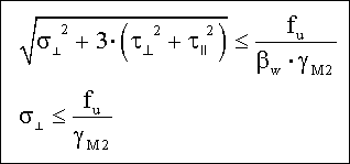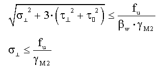 Una vez obtenidas las tensiones normales y tangenciales en cada cordón deberá verificarse en cada uno de ellos la siguiente relación:
