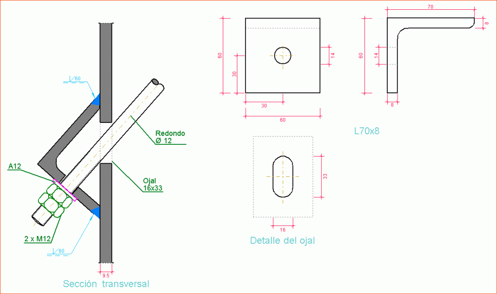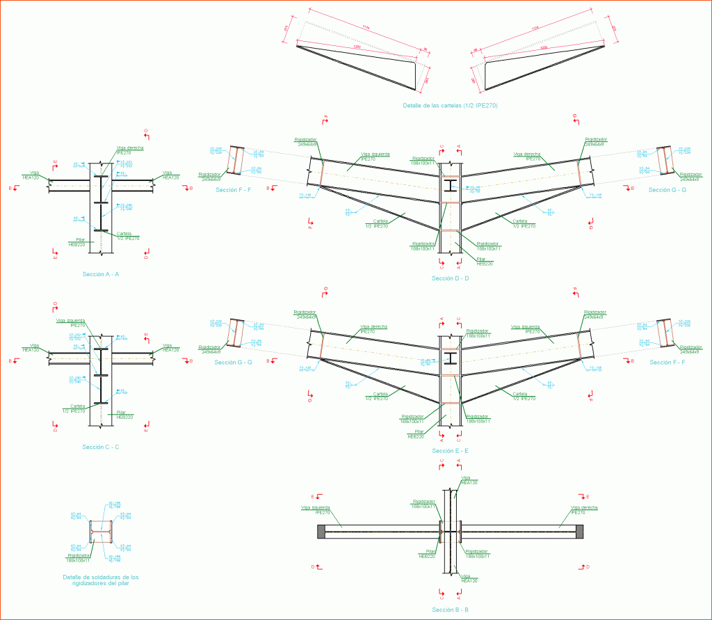 - Naranja: Se han dimensionado algunas de las uniones del nudo.
