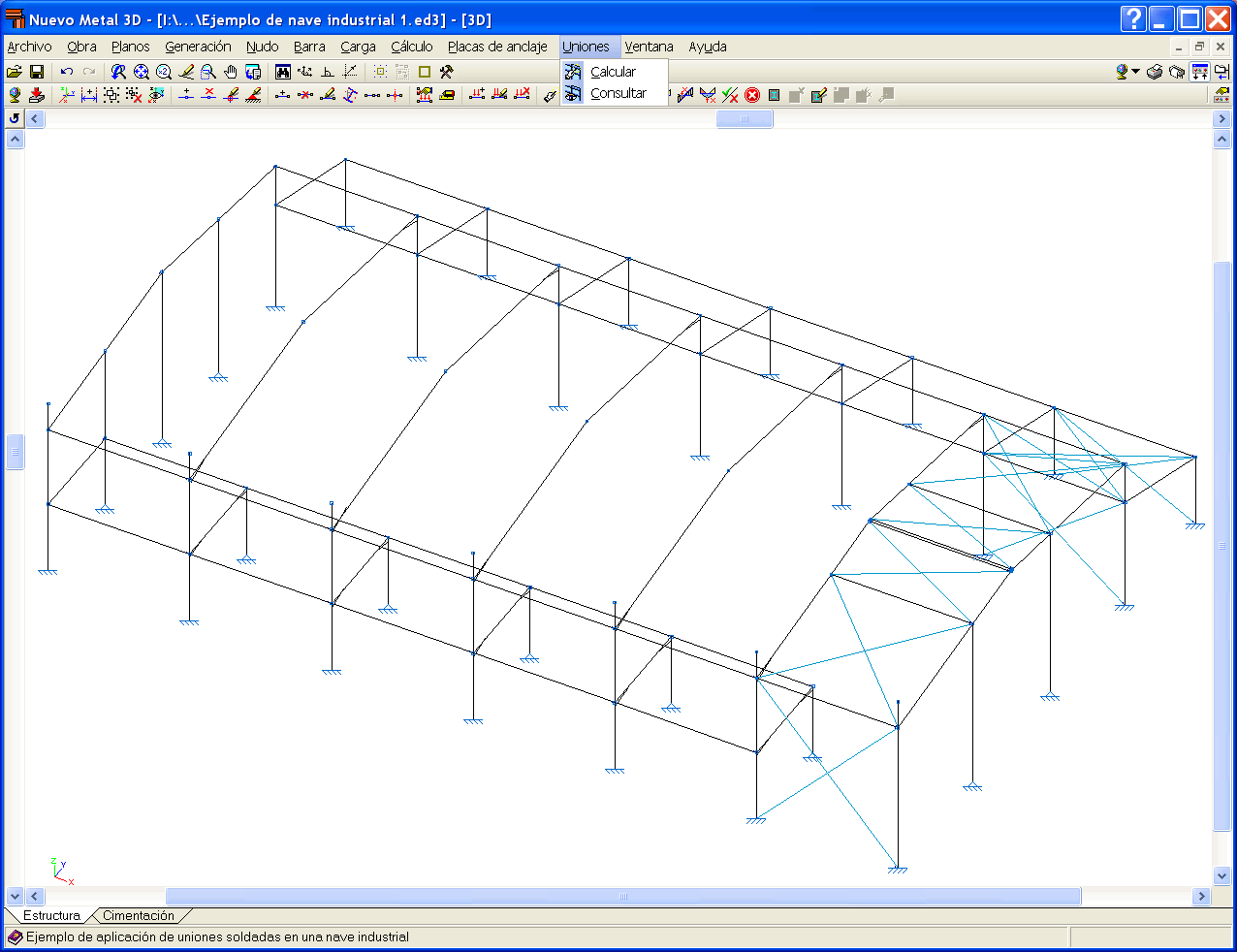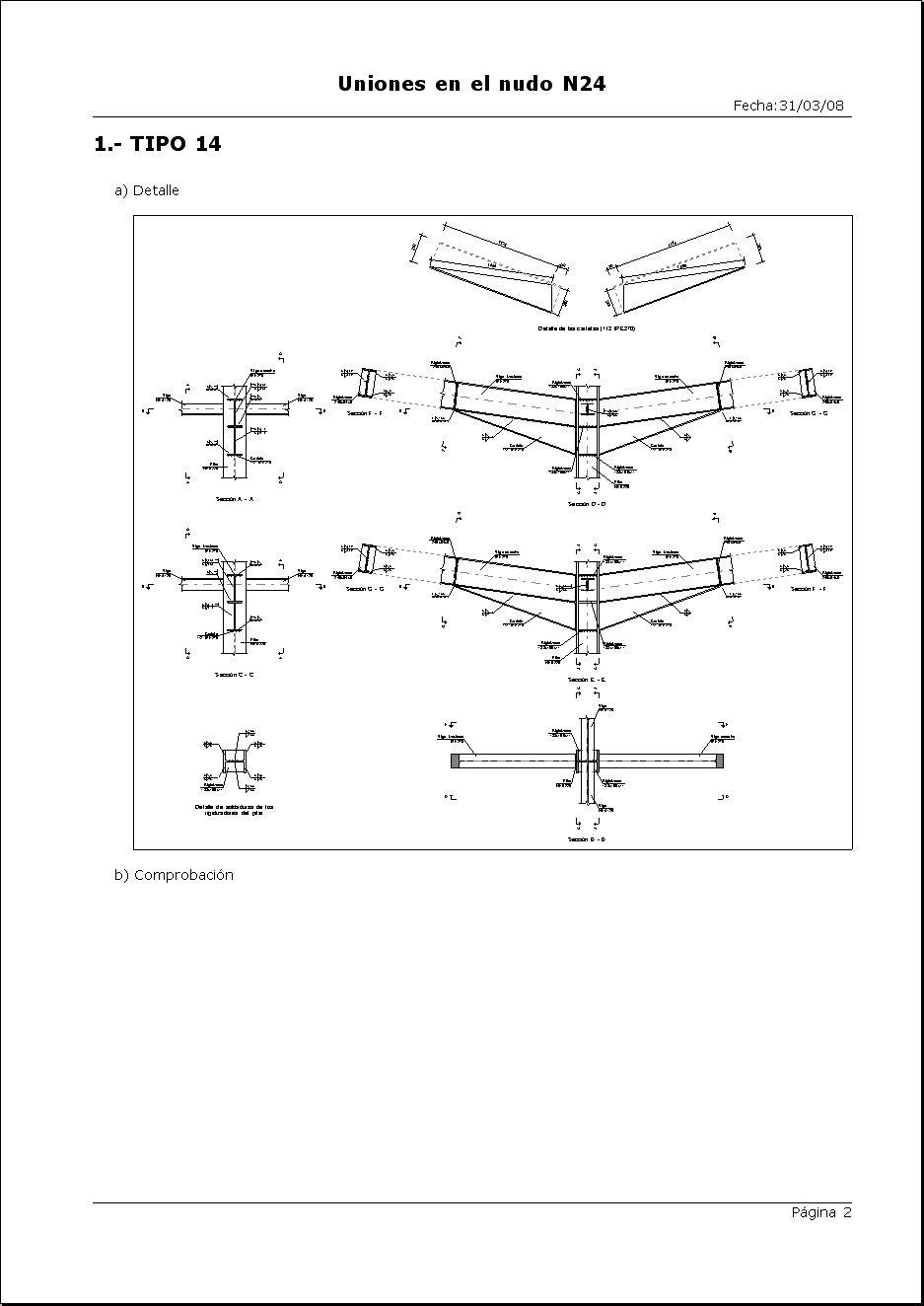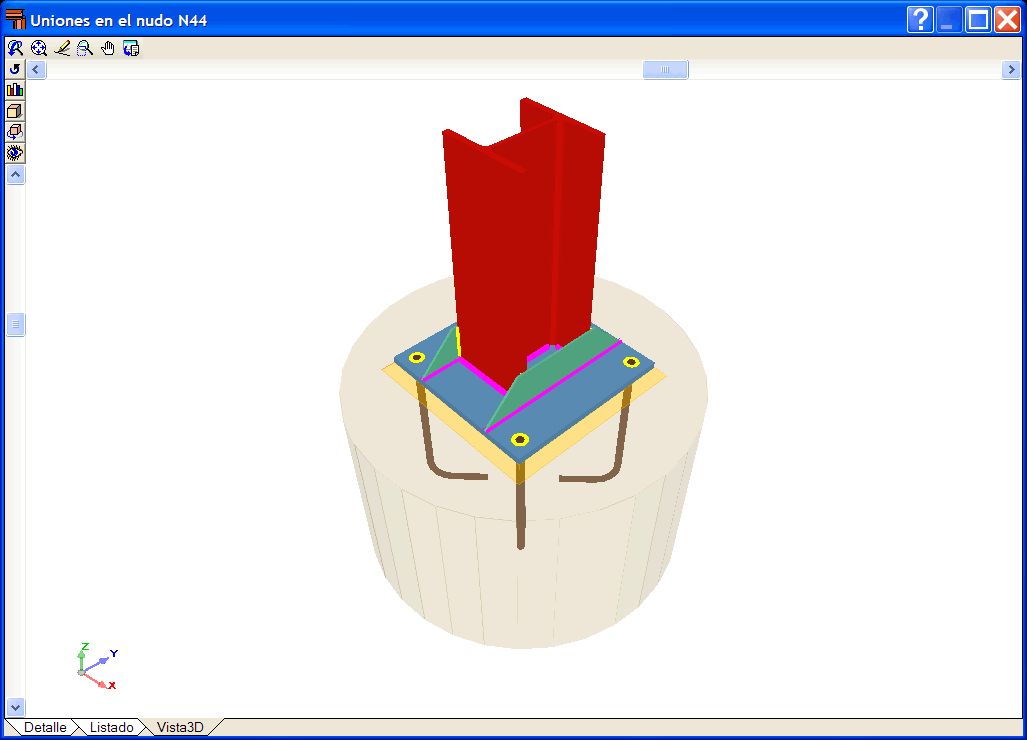 Si durante el proceso de cálculo de la estructura se detectan nudos cuya unión está resuelta en el programa, éste dimensionará las uniones y dará como resultado un plano de detalle de la misma.