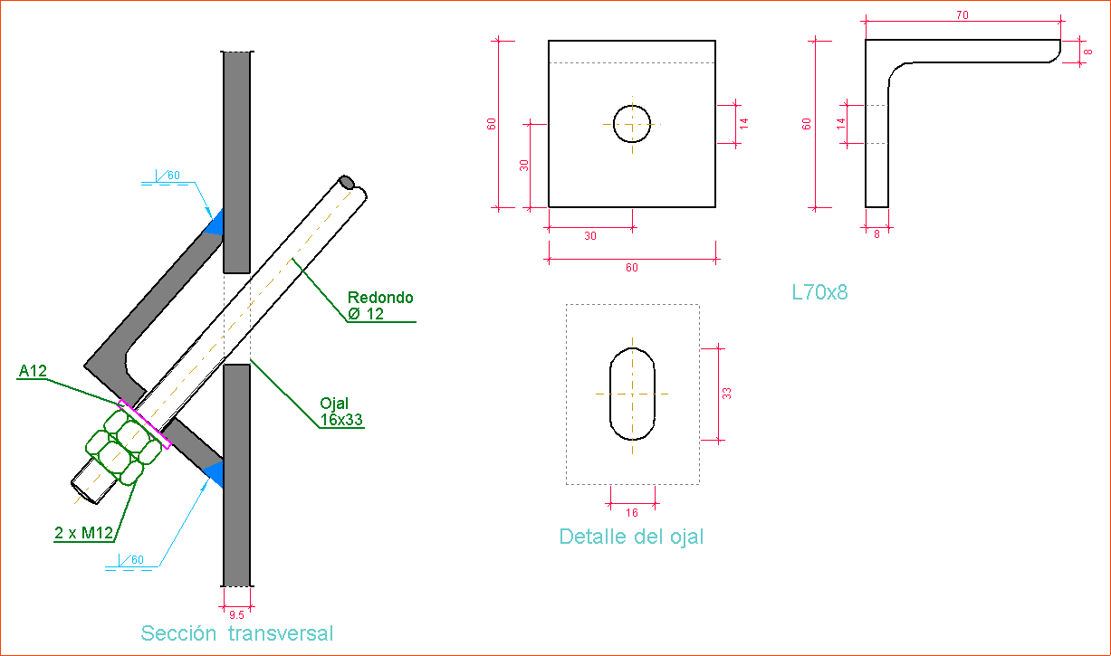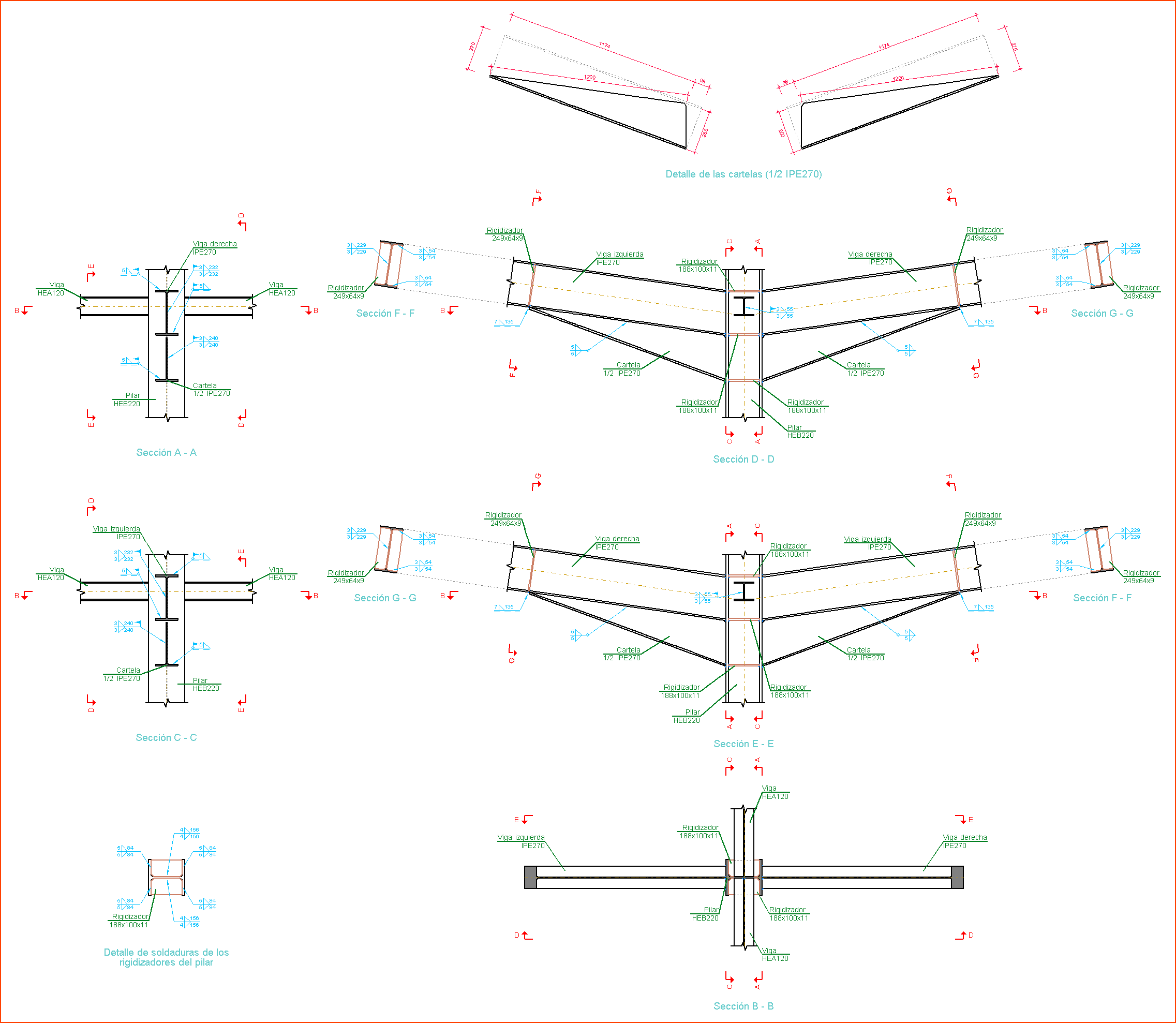- Naranja: Se han dimensionado algunas de las uniones del nudo.