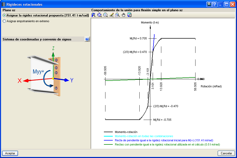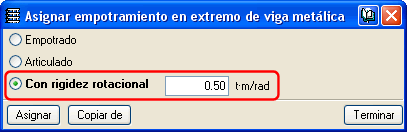 Ya que es posible dimensionar uniones atornilladas en CYPECAD (las implementadas en el módulo Uniones II), se permite asignar rigidez rotacional a los extremos de vigas (solapa Entrada de vigas > menú Vigas/Muros > opción Empotramiento en extremo de viga metálica).