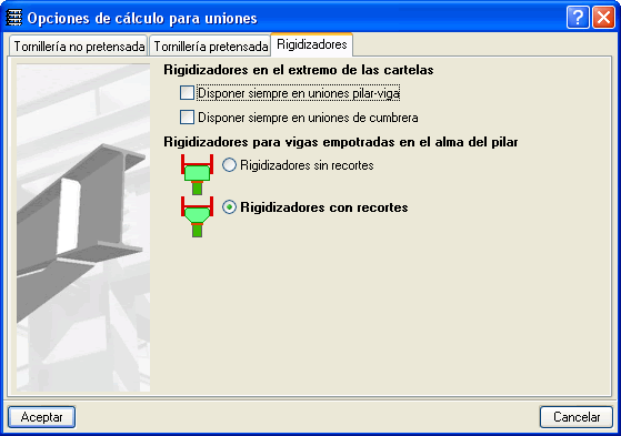 También es posible dimensionar las uniones de las conexiones entre las piezas de las Estructuras 3D integradas y los pilares y vigas metálicos de CYPECAD, siempre y cuando su tipología se encuentre dentro de las resueltas por alguno de los módulos de uniones (Uniones I, Uniones II o Uniones III).