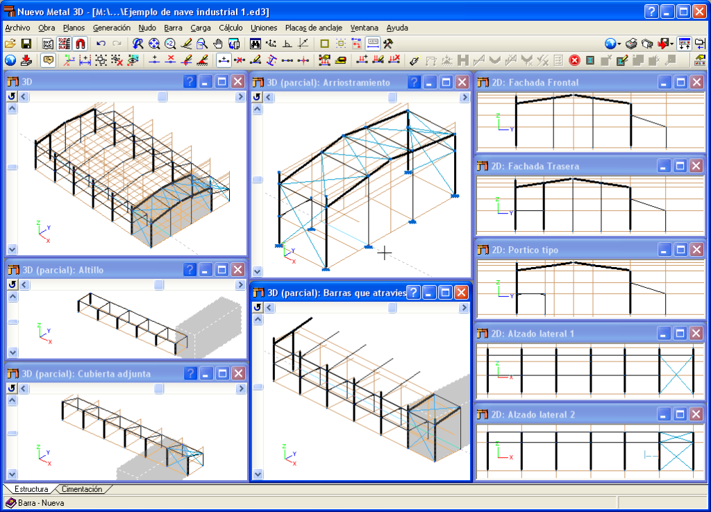 Es posible abrir una ventana con una vista 3D que sólo contenga una parte de la estructura. Para esto se ha implementado la opción Vista 3D de una parte de la estructura en el diálogo Vista Nueva (menú Ventana > Abrir nueva). Las ventanas 3D con representación parcial de la estructura ofrecen al usuario una importante ayuda en la entrada de datos, especialmente para estructuras complejas.