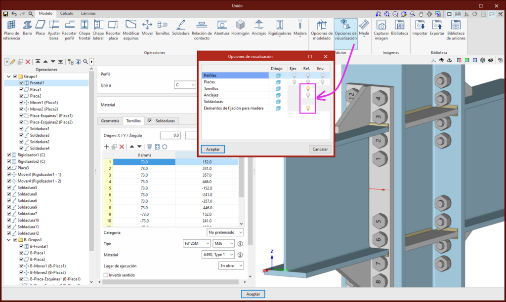 Permite modificar la visibilidad de ciertas categorías estructurales en el modelo de Revit de forma rápida y, además, aplicarlas a las vistas que desee el usuario, sin necesidad de modificar el editor de visibilidad y gráficos de la interfaz de Revit.