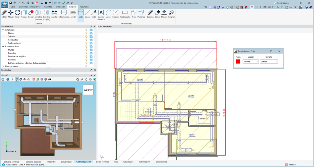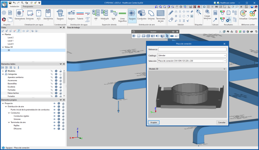 A partir de la versión 2025.d, CYPEHVAC incluye un nuevo módulo que permite el cálculo y diseño de instalaciones de ventilación mecánica controlada (VMC). El programa ofrece todos los elementos necesarios en este tipo de instalaciones: conductos, recuperadores de calor, plenums, bocas de impulsión y extracción, silenciadores, etc. de diferentes fabricantes.