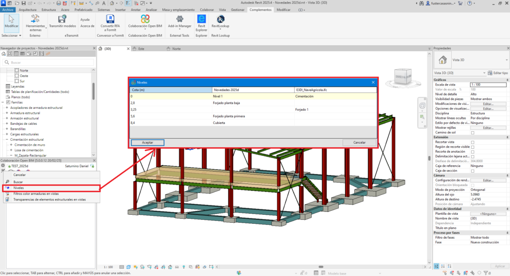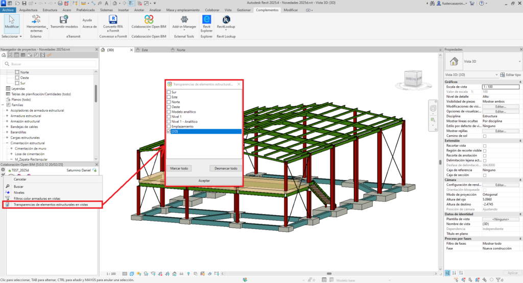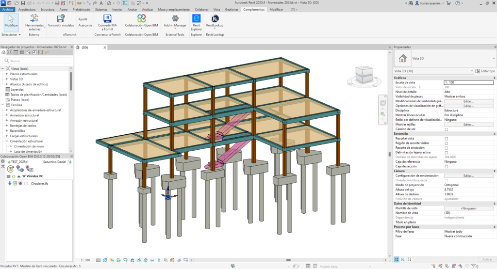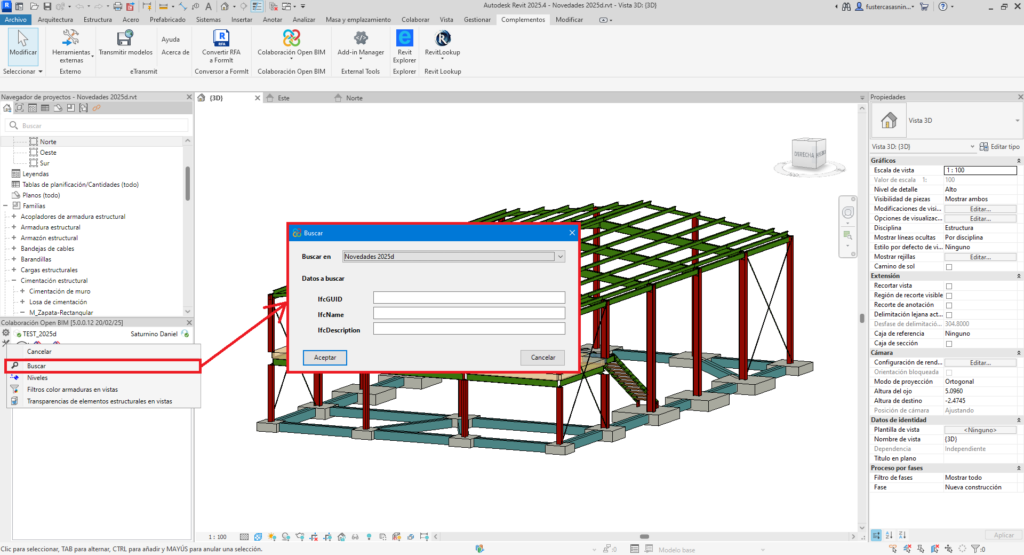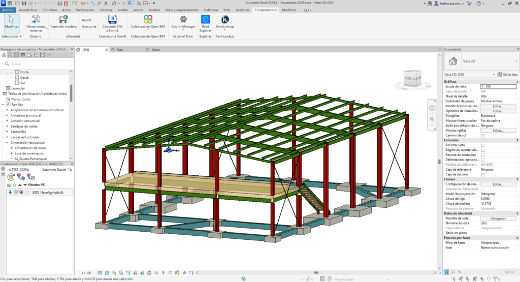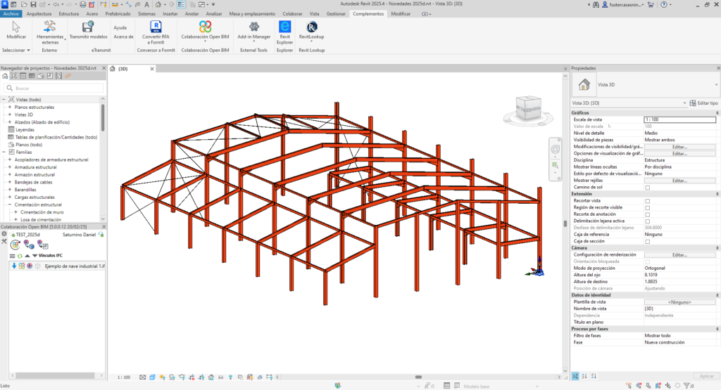 En la versión 2025.d, se ha incorporado la capacidad de conversión de estructuras metálicas y modelos 3D integrados en elementos nativos dentro del entorno de Revit.