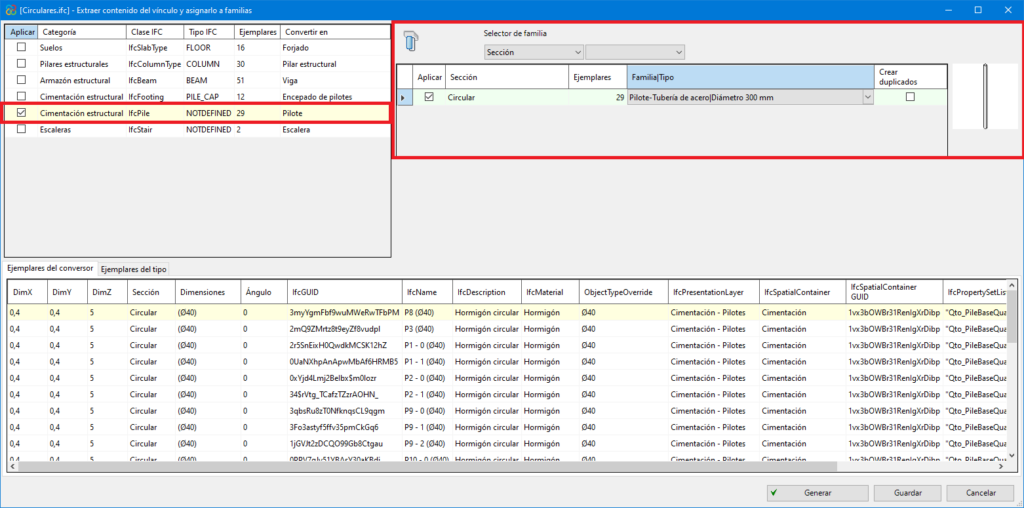 En esta actualización, se han añadido dos nuevas categorías dentro del conversor a entidades nativas de Revit: IfcPile e IfcMember, con el objetivo de ampliar y mejorar la clasificación y conversión de elementos estructurales.