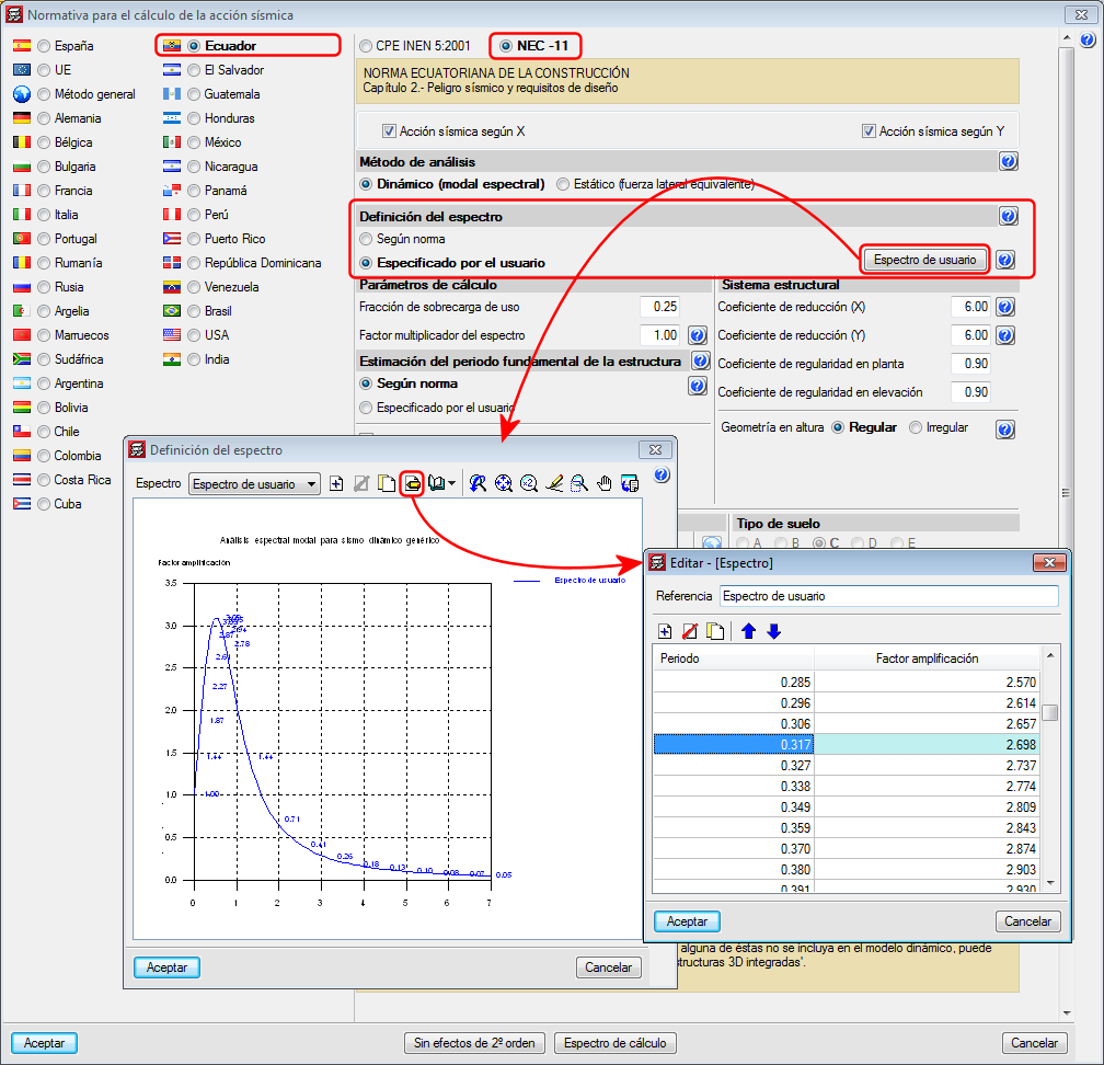 En "Espectro sísmico especificado por el usuario" puede encontrar más información sobre las normas que permiten esta posibilidad. ![]()