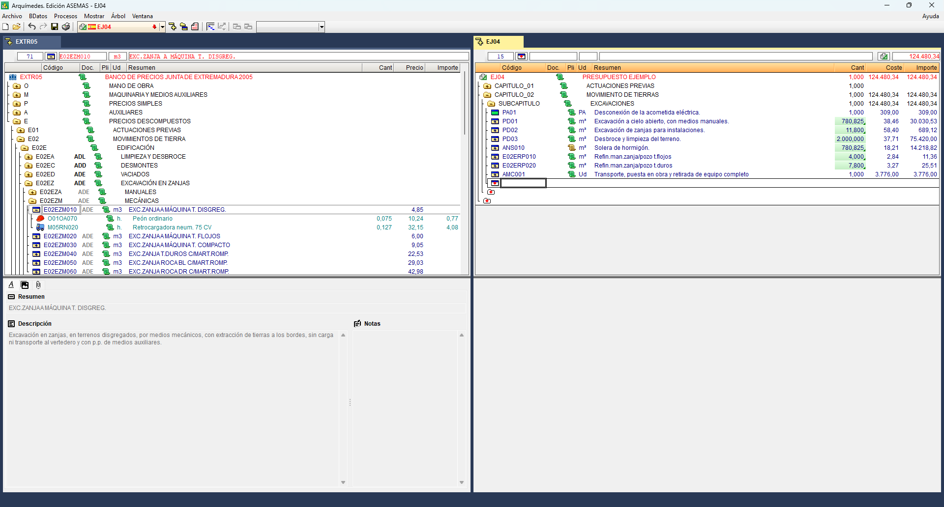 Arquímedes. Edición ASEMAS trabaja con bancos de precios paramétricos (incluso compilados en DLLs), con precios múltiples (precio de mano de obra, materiales, etc., correspondientes a cada provincia), y con pliegos de condiciones (si el banco de precios con el que trabaja dispone de pliegos de condiciones). Incluye un diccionario para la localización rápida de conceptos a partir de términos clave. Asocia gráficos a partidas, a capítulos y a precios unitarios.