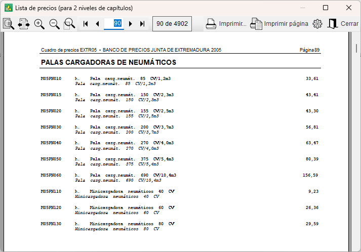 - Base de Precios de la Construcción 2005 de la Junta de Extremadura.