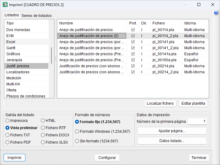 Estos listados no son editables y de forma automática, extraen la información de las unidades de obra creadas con el Generador de precios asociado a la base de datos abierta. - Plantillas de listados