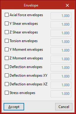 Desde "Envolventes", en la parte inferior, se activa la visibilidad de las gráficas de las envolventes de esfuerzos, flecha y tensiones.