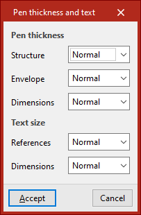 La opción "Plumas y textos" permite modificar el grosor de las "Plumas" de los elementos del plano y el "Tamaño de los textos".