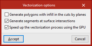 Por último, la edición de las "Opciones de vectorización" es posible en los planos que representan los perfiles con su sección real y permiten su ajuste. Son las siguientes: