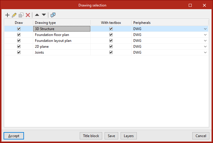 La ventana "Selección de planos" permite realizar la gestión de la lista de planos de la obra.