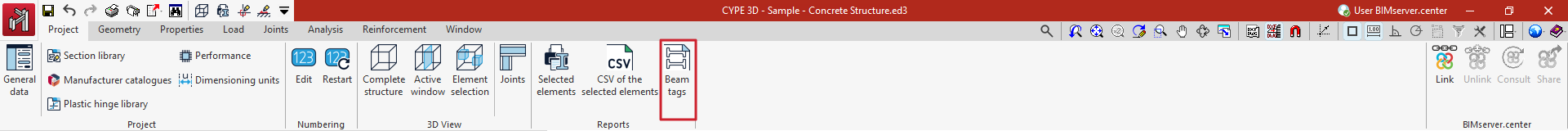 Para que esta opción esté disponible, se deben haber introducido y dimensionado vigas de hormigón en el modelo con las opciones correspondientes de las pestañas "Geometría" y "Cálculo".