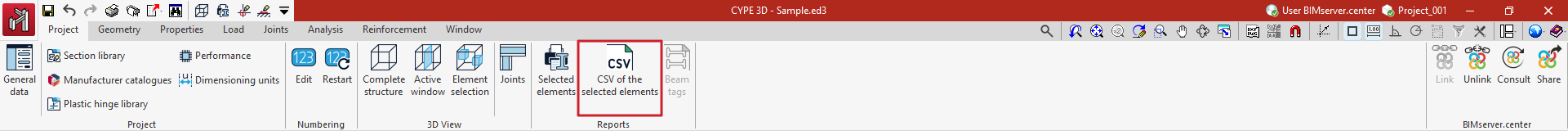 Para poder generar los ficheros CSV de las barras y de las reacciones en nudos, la obra debe estar calculada.