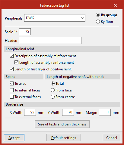 - Revestimiento de protección (activando esta opción se incluirán tablas resumen de revestimientos ignífugos en los planos, y se etiquetará cada barra con la referencia del grupo de barras indicado en la tabla)