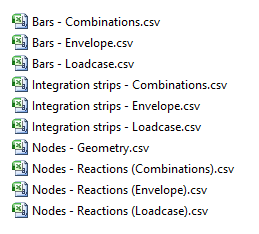 En el caso de los ficheros CSV de bandas de integración, es necesario que la obra esté calculada y, además, se deben haber definido bandas de integración en las láminas utilizando la opción correspondiente.