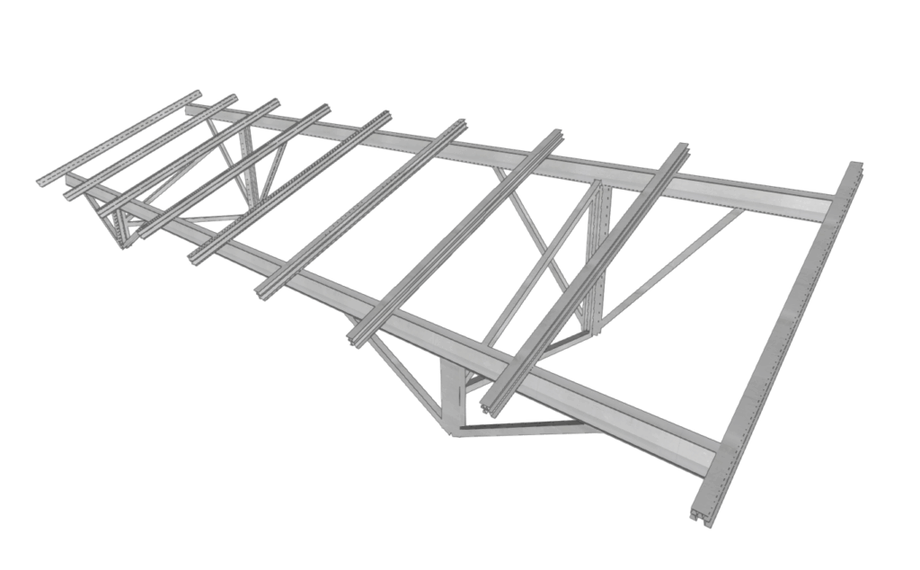 - en su caso, los paños de carga necesarios que efectúan el reparto de cargas superficiales y que incorporan la información del peso propio de los cerramientos y de las correas, y/o de la sobrecarga de uso sobre la cubierta;