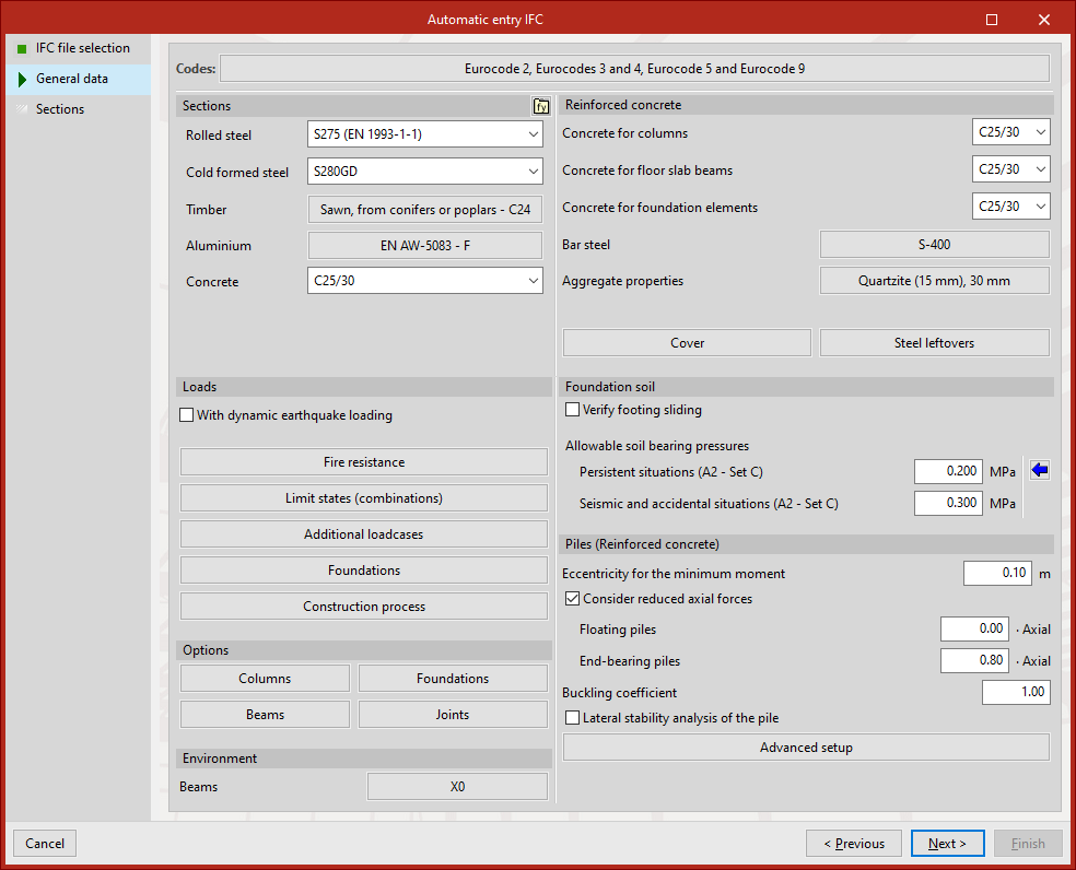 En esta fase, y al igual que en el proceso de creación de una obra nueva vacía, se deben definir los datos generales de la obra. Aquí se configuran las normas y los materiales a emplear, las hipótesis de carga y otras opciones de cálculo.