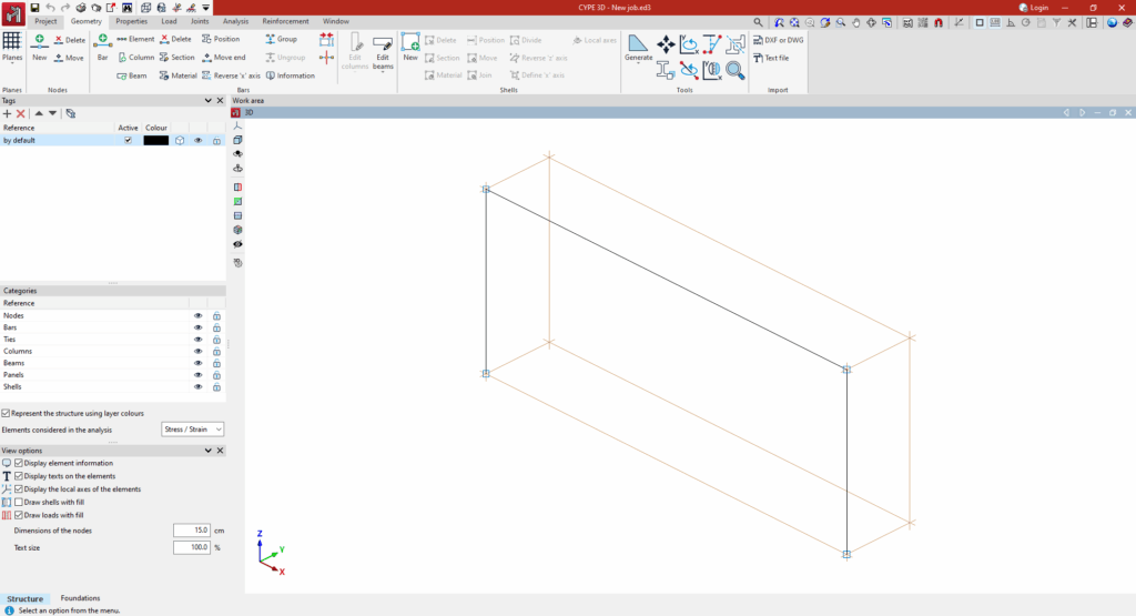 - Introducción y descripción de la geometría de la estructura (pestaña "Geometría"):