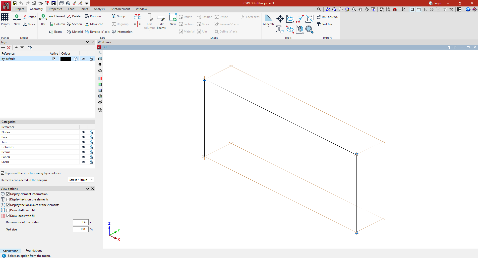 - Modelado de la estructura mediante su introducción libre en CYPE 3D.