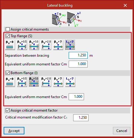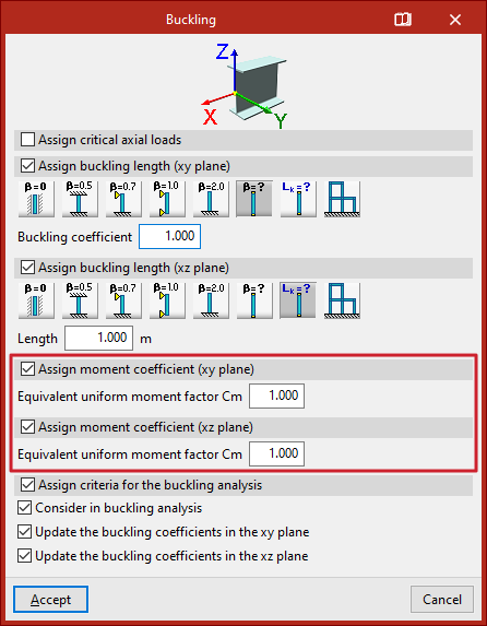 Si la casilla de la segunda columna está desactivada, el programa no aplicará el valor del coeficiente de empotramiento parcial definido.