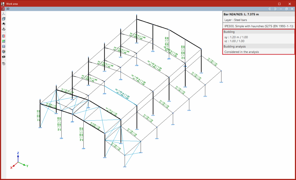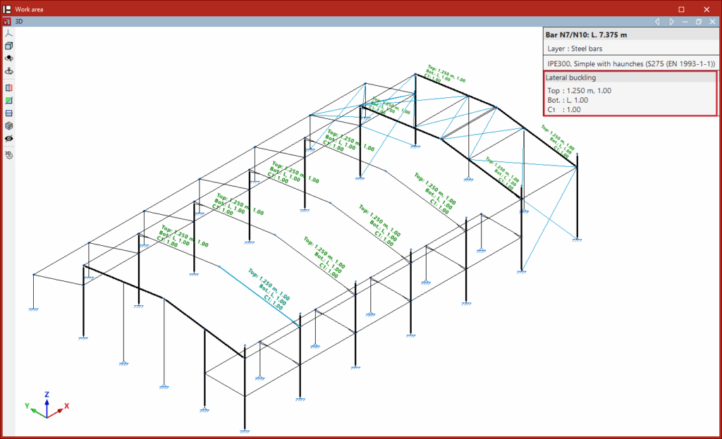 - en el bloque "Barras", las opciones para la edición de las propiedades de las barras, como las relacionadas con el pandeo y el pandeo lateral, o la introducción de parejas de arriostramientos, articulaciones y empotramientos en extremos, rótulas plásticas y grupos de flecha;