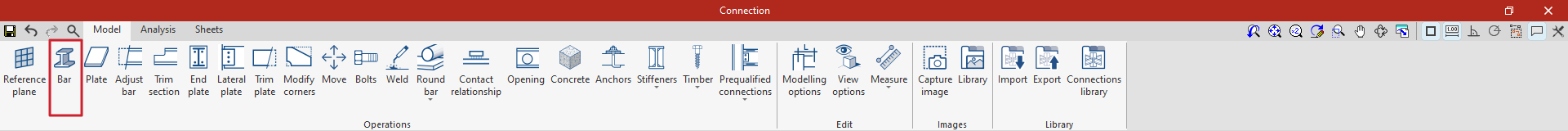 La operación "Barra" en el modelado de uniones permite añadir barras adicionales a la unión que no han sido introducidas previamente en la definición de perfiles del nudo y que permiten simular descuelgues, elementos de apoyo, ménsulas de refuerzo, etc.