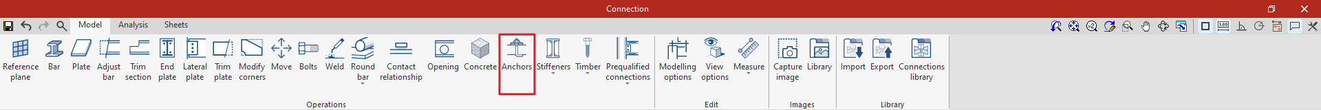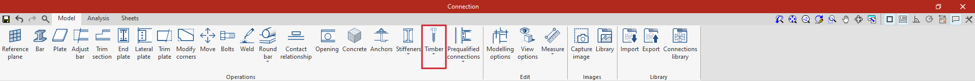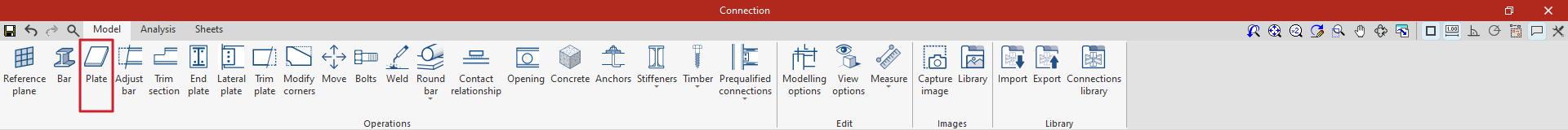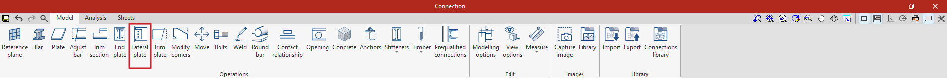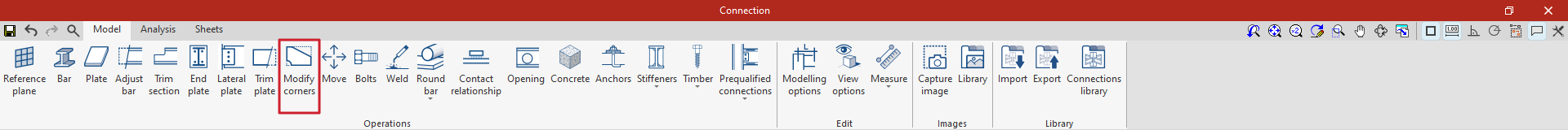 Es posible utilizar conexiones precalificadas en CYPE Connect y StruBIM Steel. Para ello, dentro del bloque "Operaciones" de la pestaña "Modelo" en la ventana de edición de cada unión, se utiliza la operación "Conexiones precalificadas", que permite desplegar un menú con los diferentes tipos disponibles.