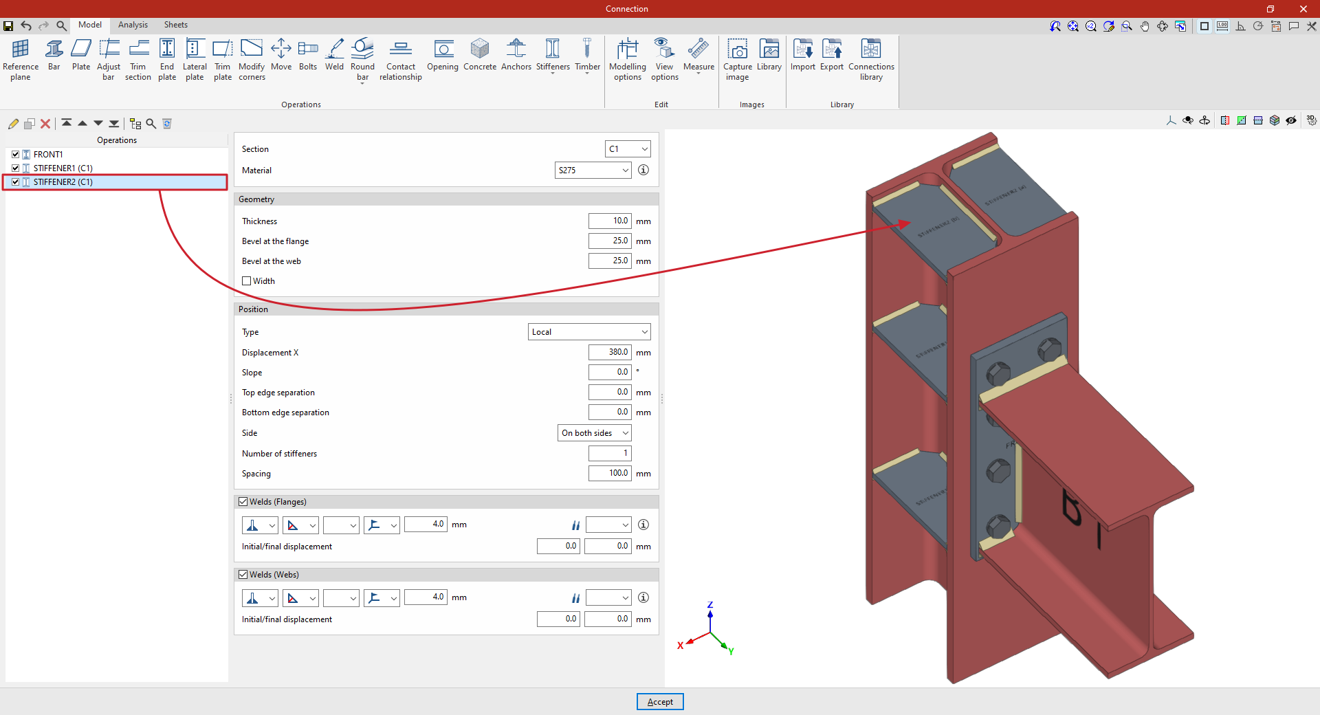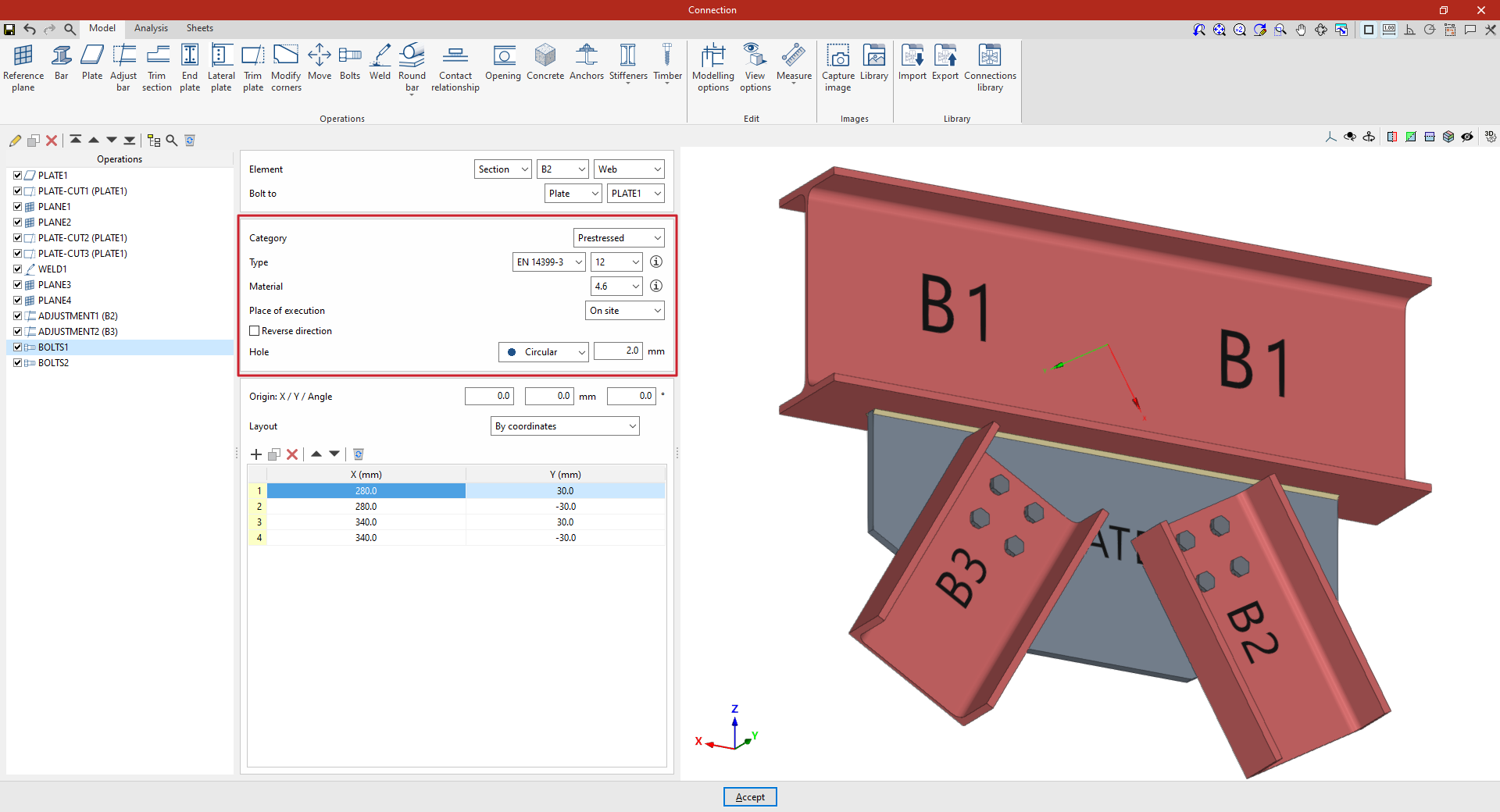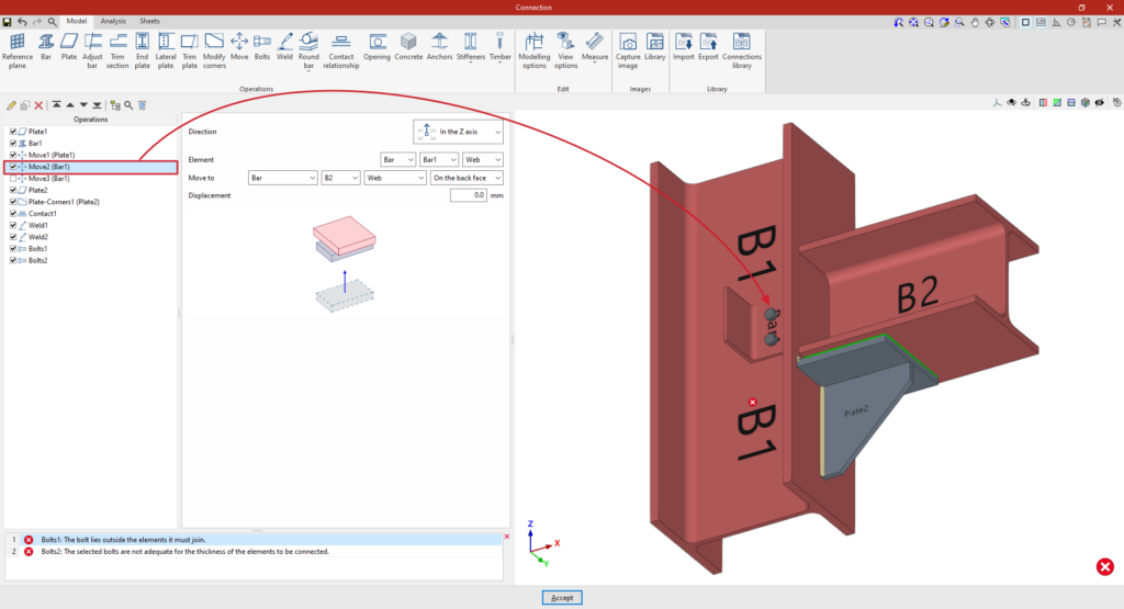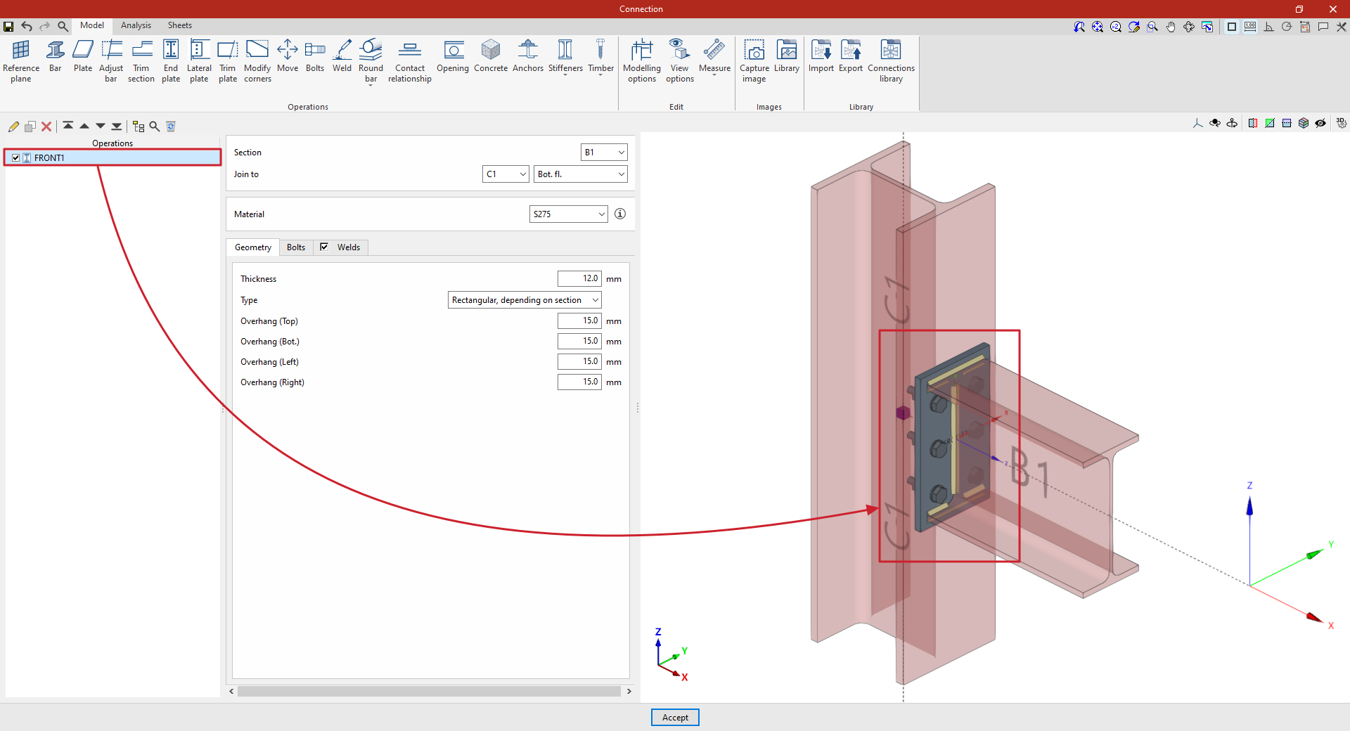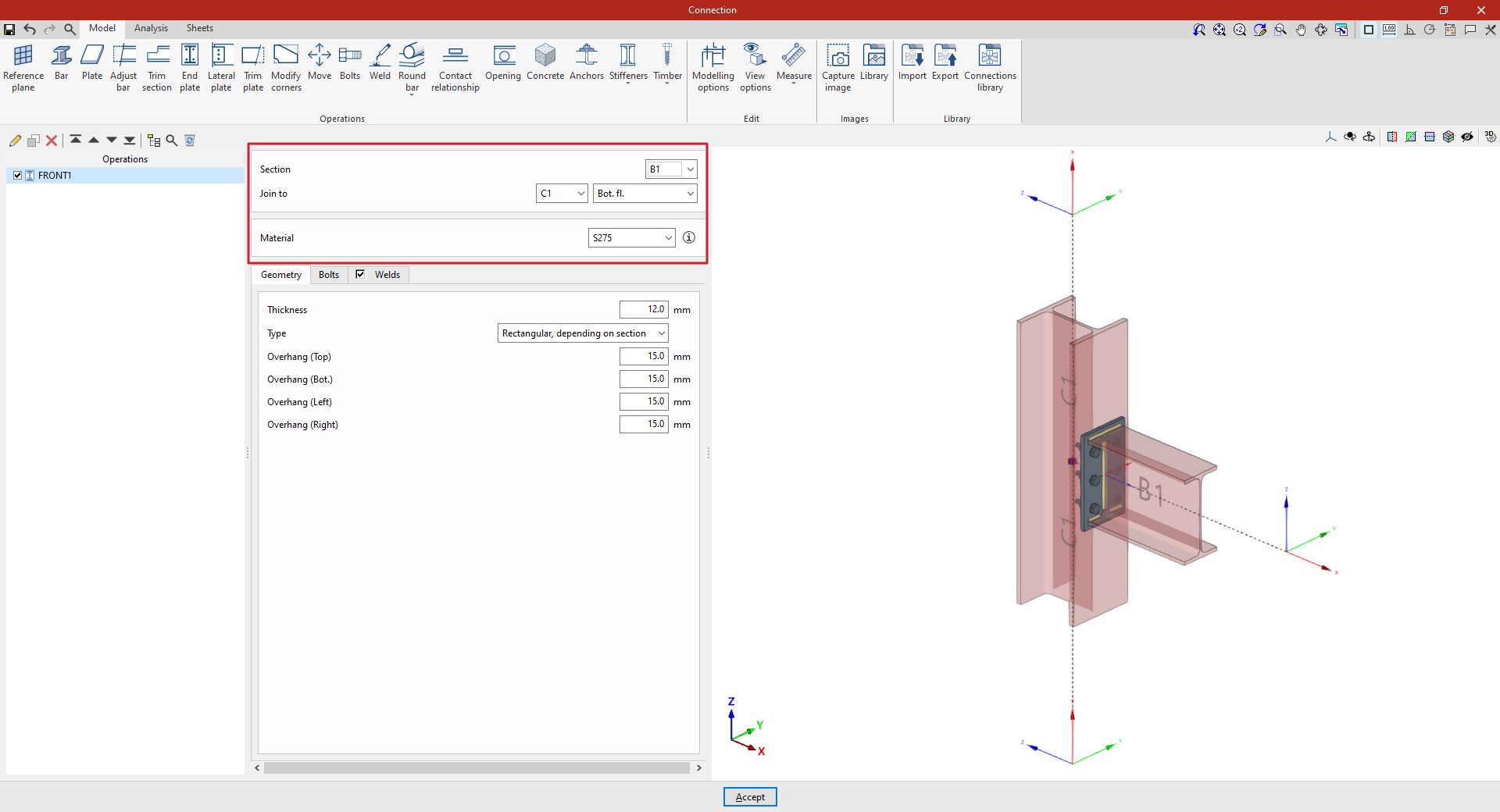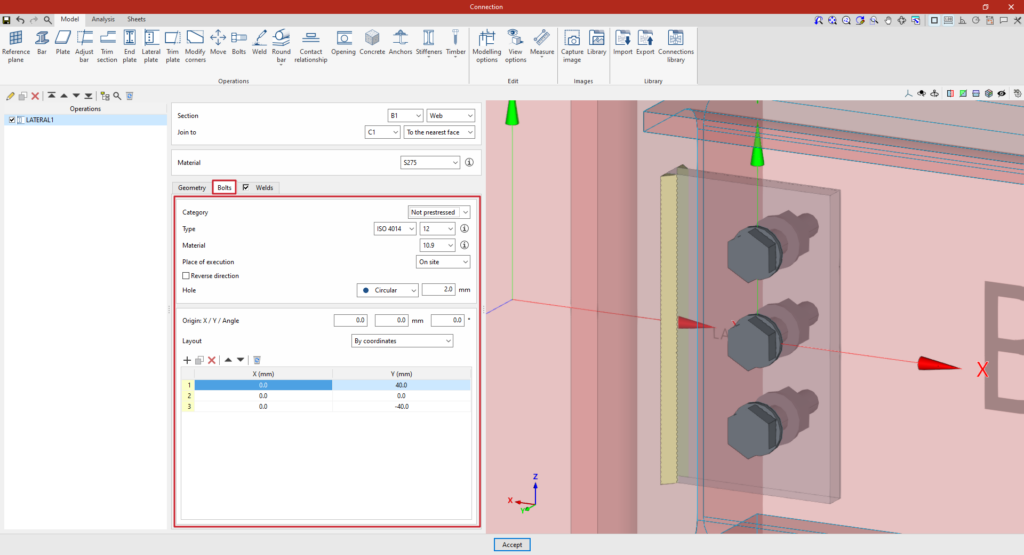 A partir de este punto, se deben añadir el resto de operaciones necesarias para completar el modelo de la unión antes de poder realizar el “Cálculo” de la misma en la pestaña correspondiente.