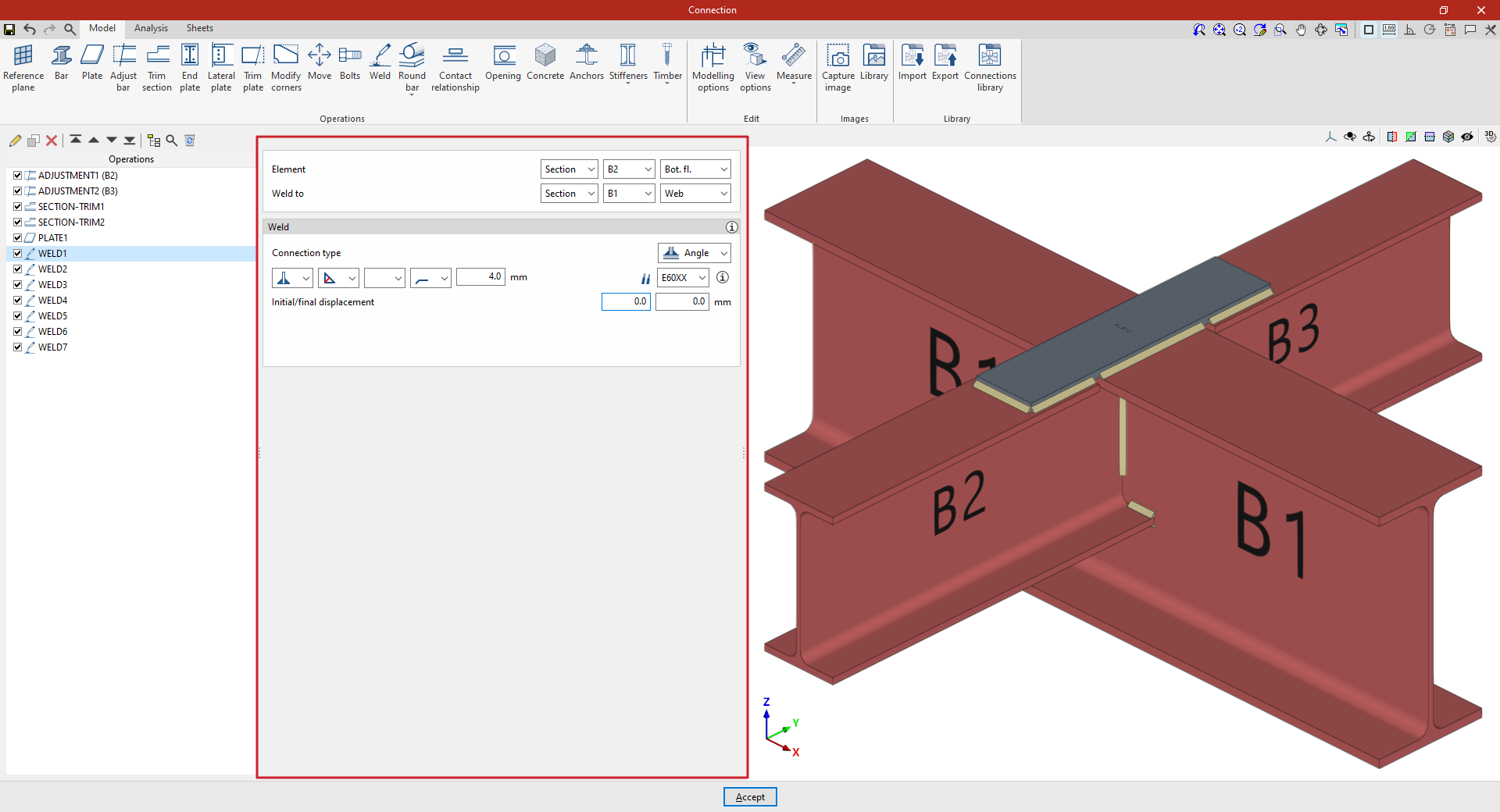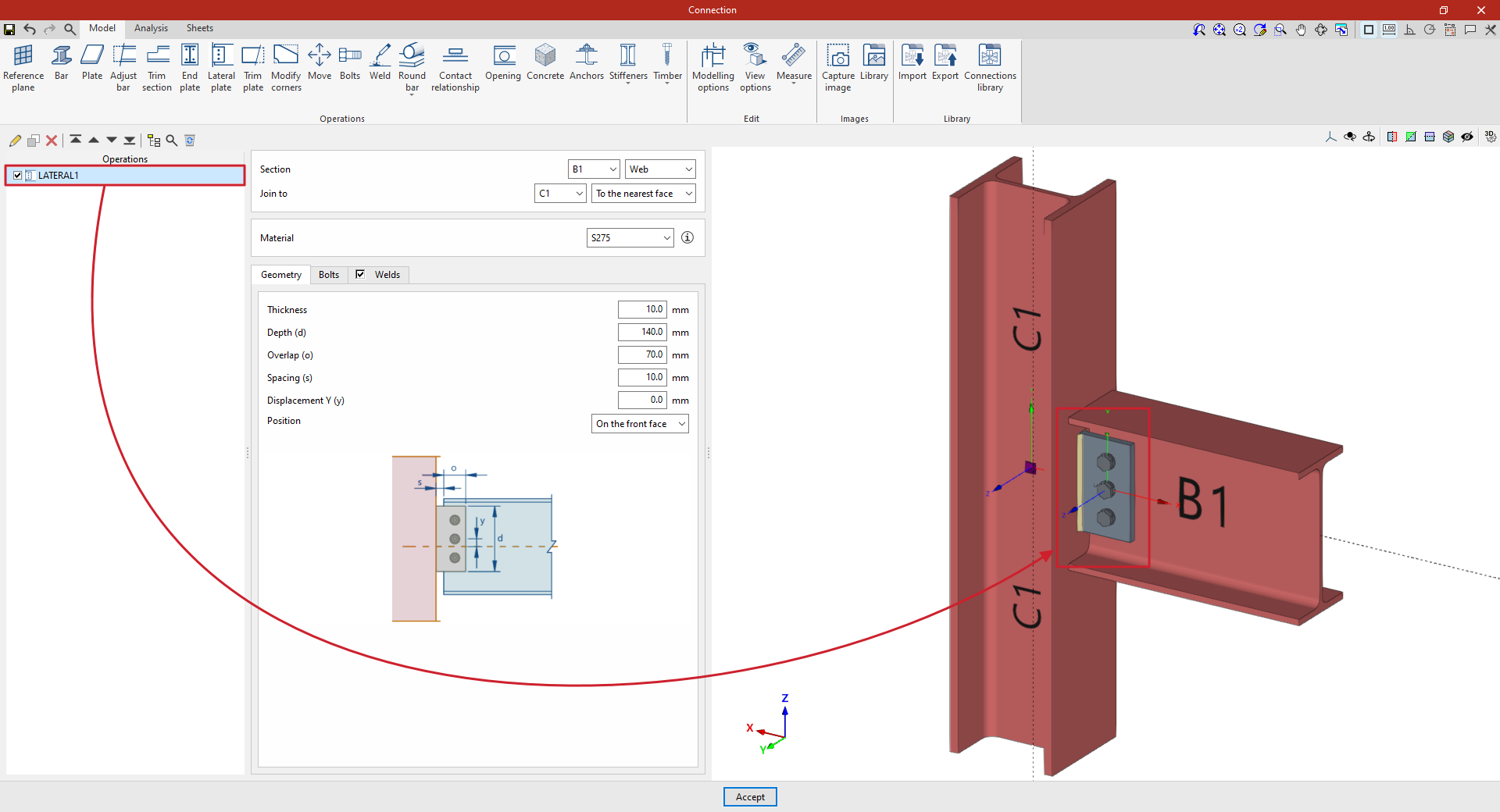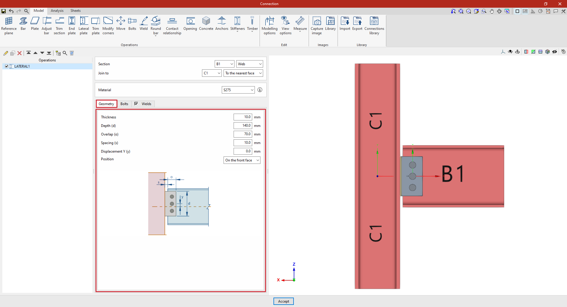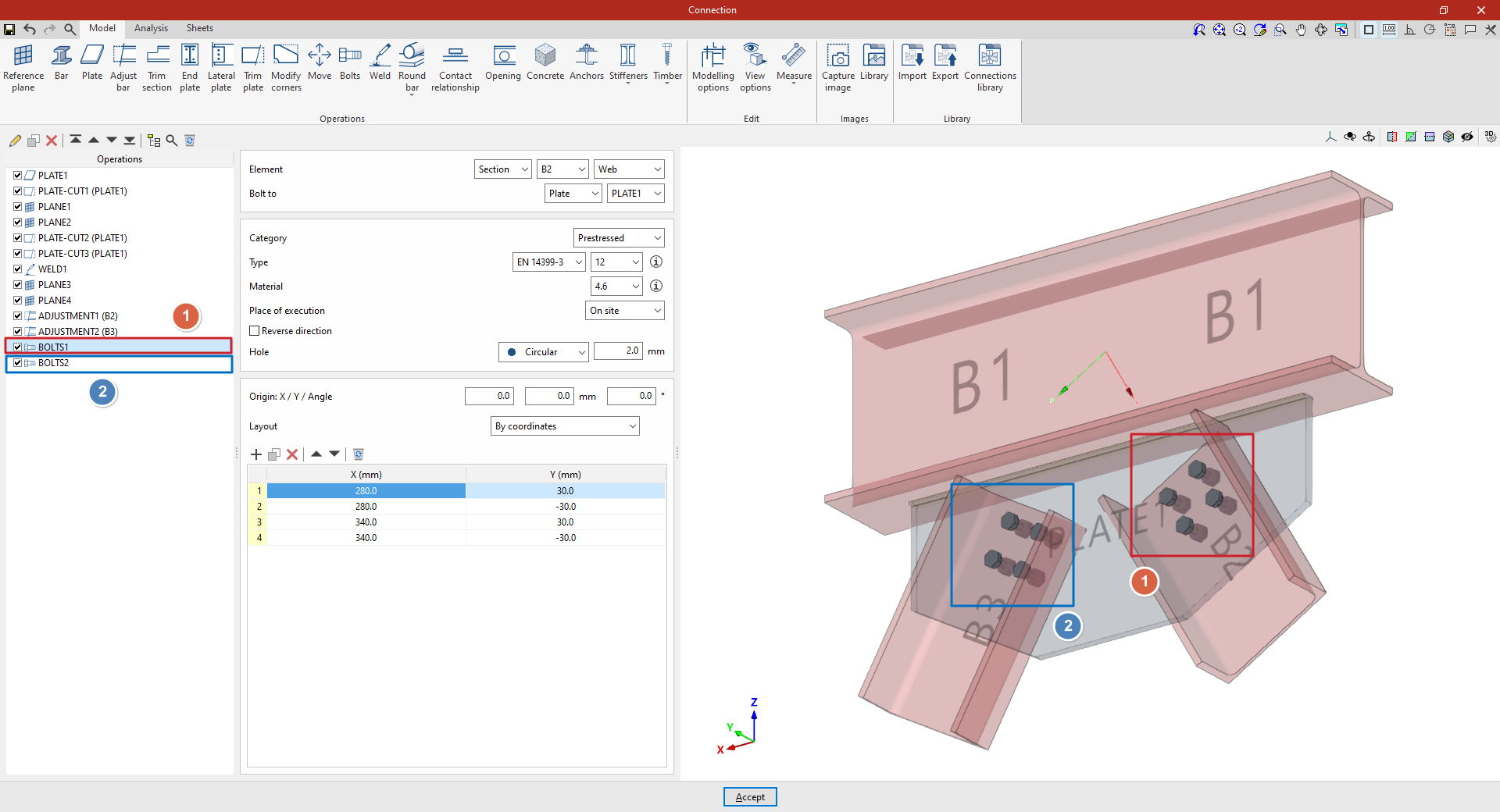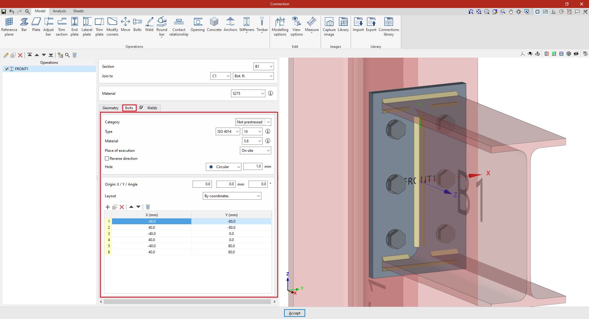 A partir de este punto, se deben añadir el resto de operaciones necesarias para completar el modelo de la unión antes de poder realizar el “Cálculo” de la misma en la pestaña correspondiente.