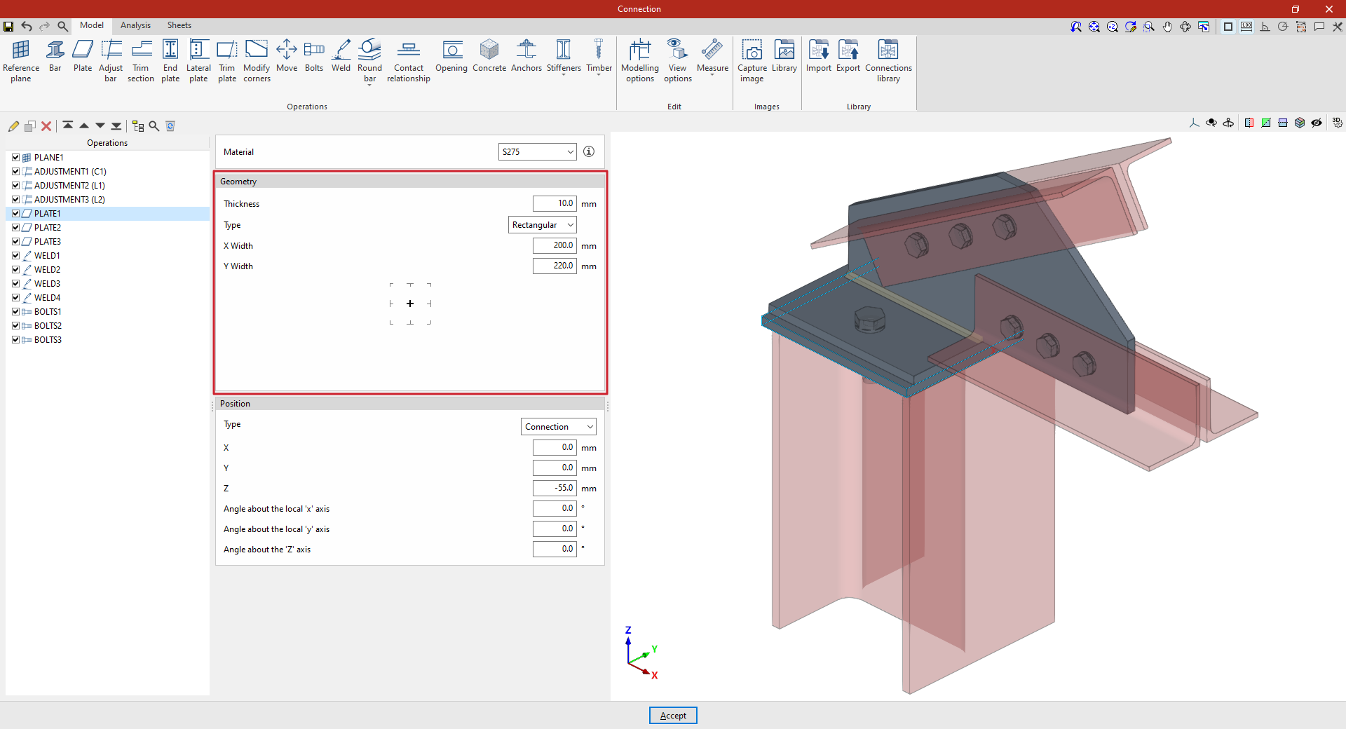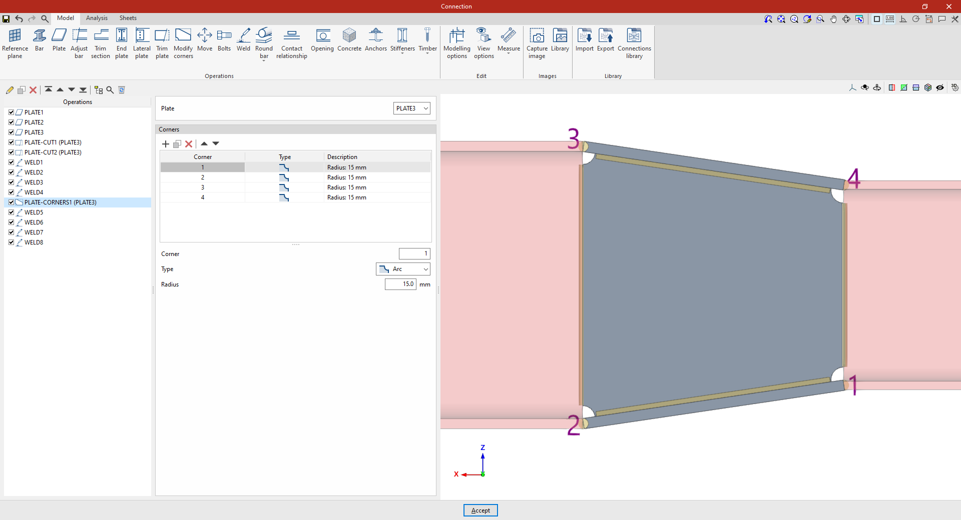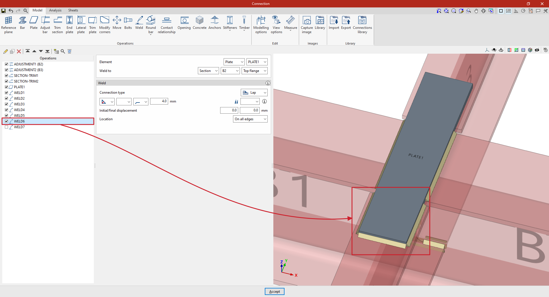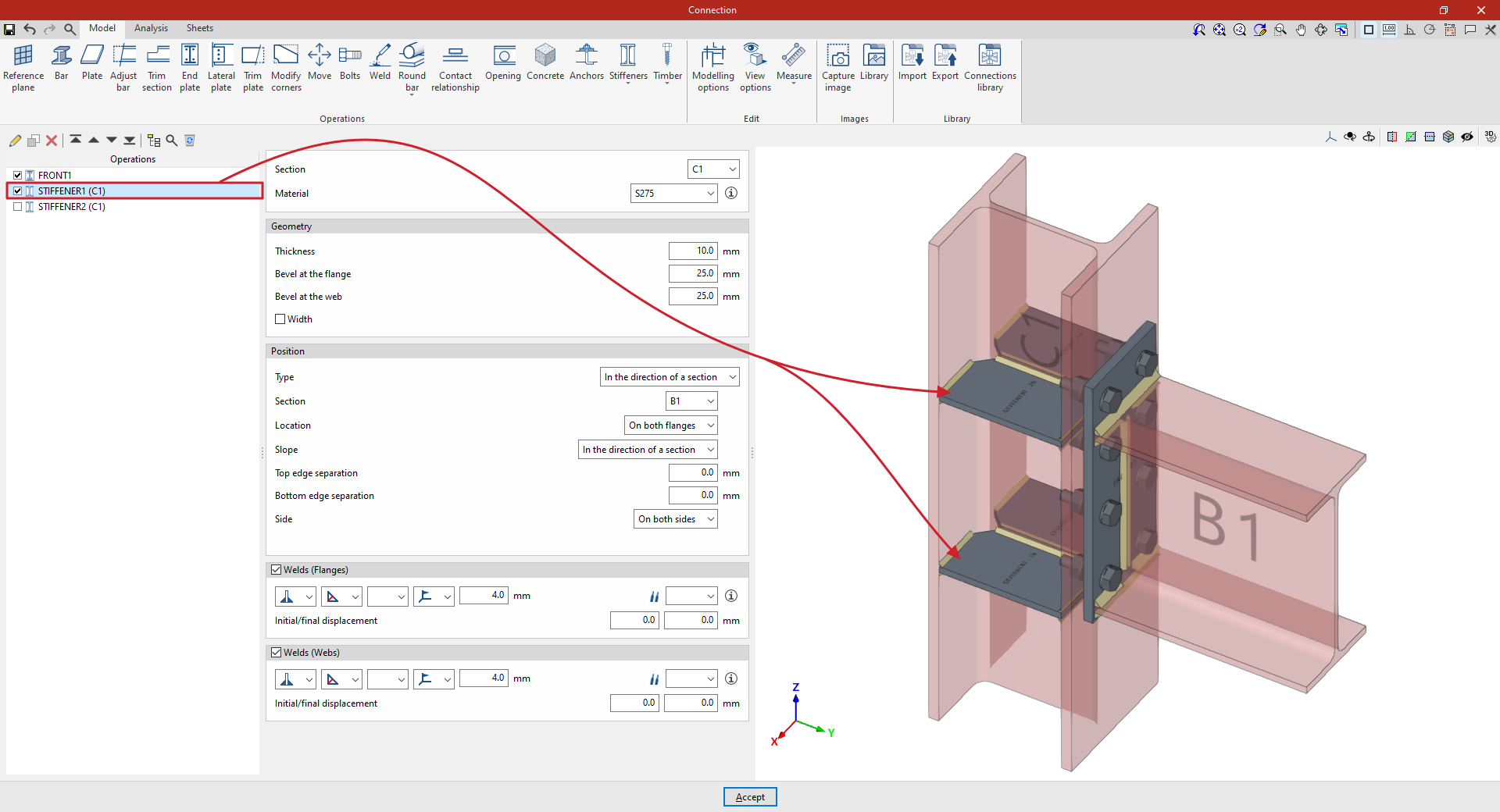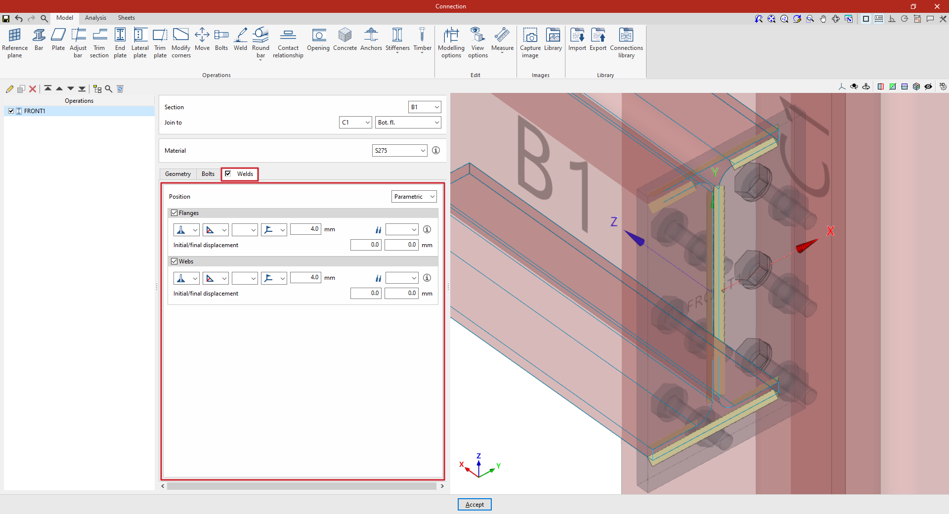 A partir de este punto, se deben añadir el resto de operaciones necesarias para completar el modelo de la unión antes de poder realizar el “Cálculo” de la misma en la pestaña correspondiente.