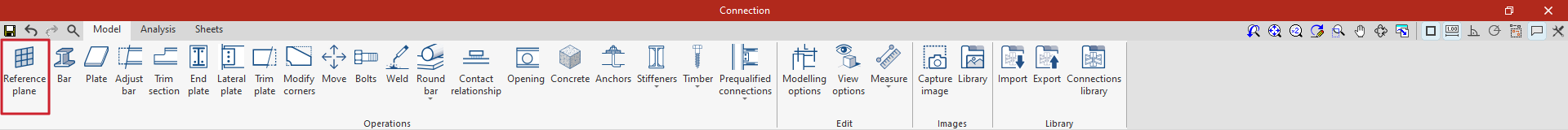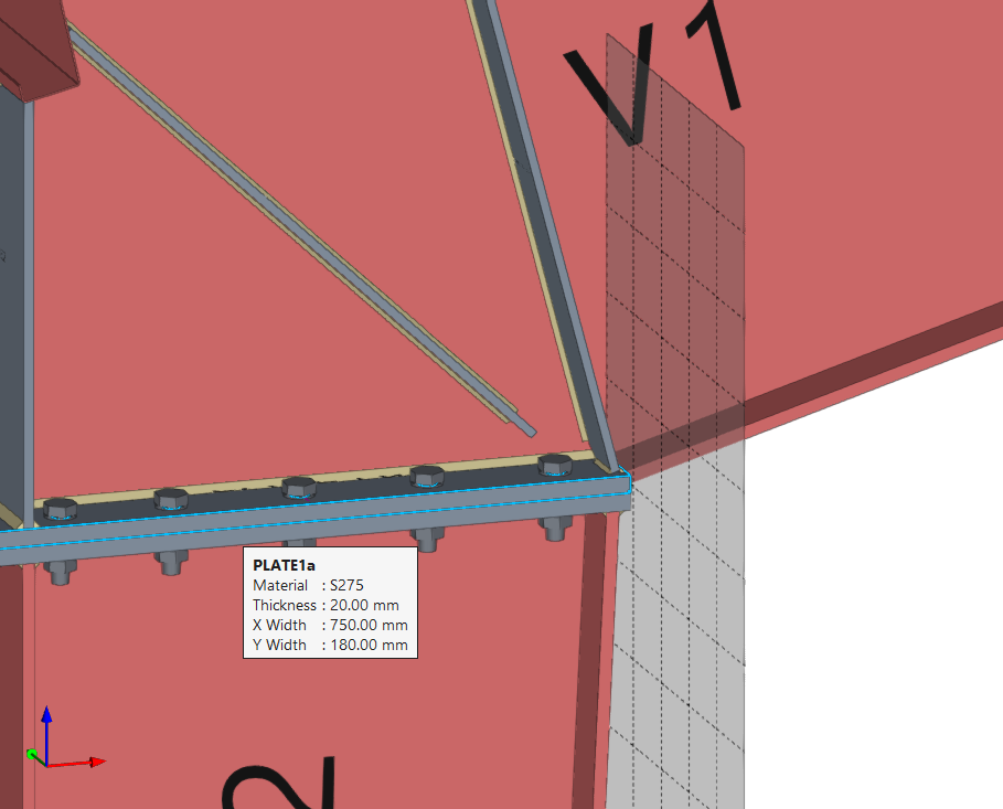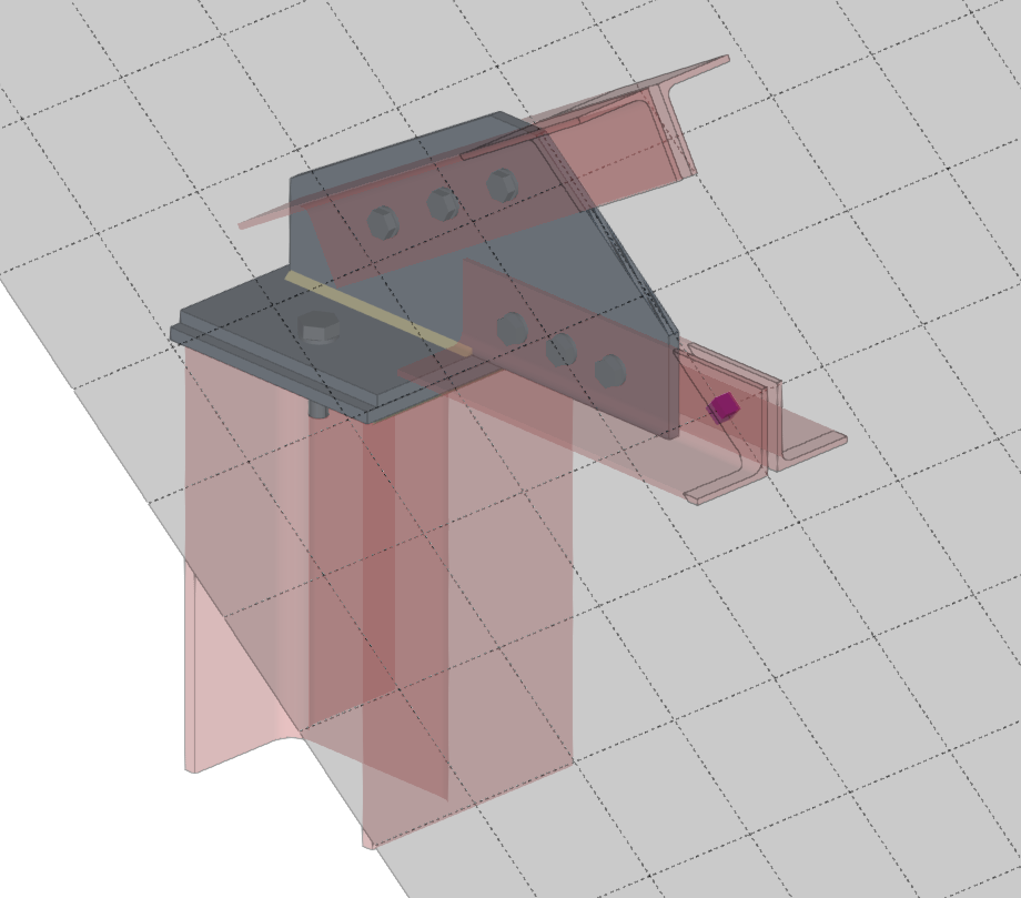 La operación "Plano de referencia" permite introducir planos de referencia auxiliares en el modelado de uniones que se utilizan para realizar cortes en perfiles y placas, para realizar ajustes de extensión o reducción de estos planos, o como referencia al añadir placas.