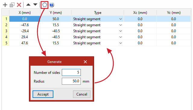 - el “Ángulo inicial” donde se sitúa el primero, medido a partir de la posición del eje Y local del perfil,