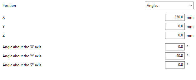 Si se define la “Posición” por “Ángulos”, se deben introducir en primer lugar las coordenadas “X”, “Y” y “Z” de un punto del plano.