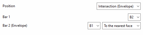 - en la intersección entre una barra y la envolvente de otra (seleccionando la opción "Intersección (Envolvente)");