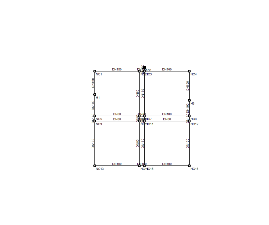 - Diseño libre de la red mediante la introducción manual por coordenadas de los nudos y el trazado de los tramos que componen la instalación en CYPE Water Supply.
